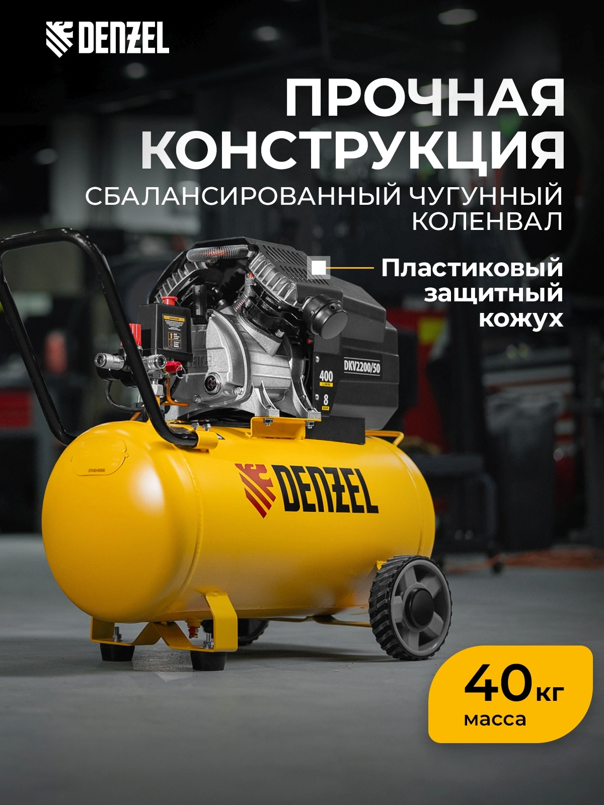 Компрессор поршневой Denzel DKV2200/50,Х-PRO масляный 400л/мин 50л 2200Вт желтый/черный