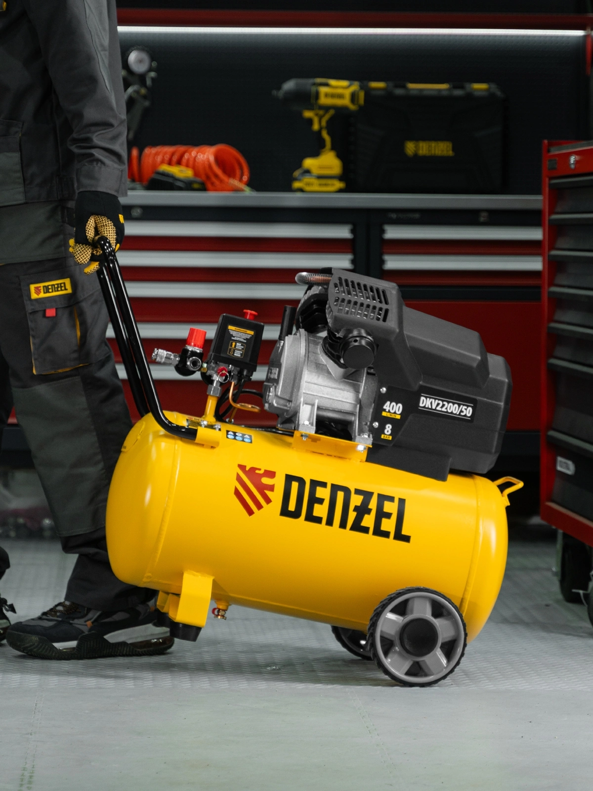 Мощный 2,2 кВт компрессор Denzel DKV2200/50,Х-PRO предназначен для работы в быту, на станциях СТО и на строительных площадках. Используется для обеспечения работы пневмоинструмента, например: пневмозубила, пневмогайковерта, пневмомолотка, пневмодрели и других.