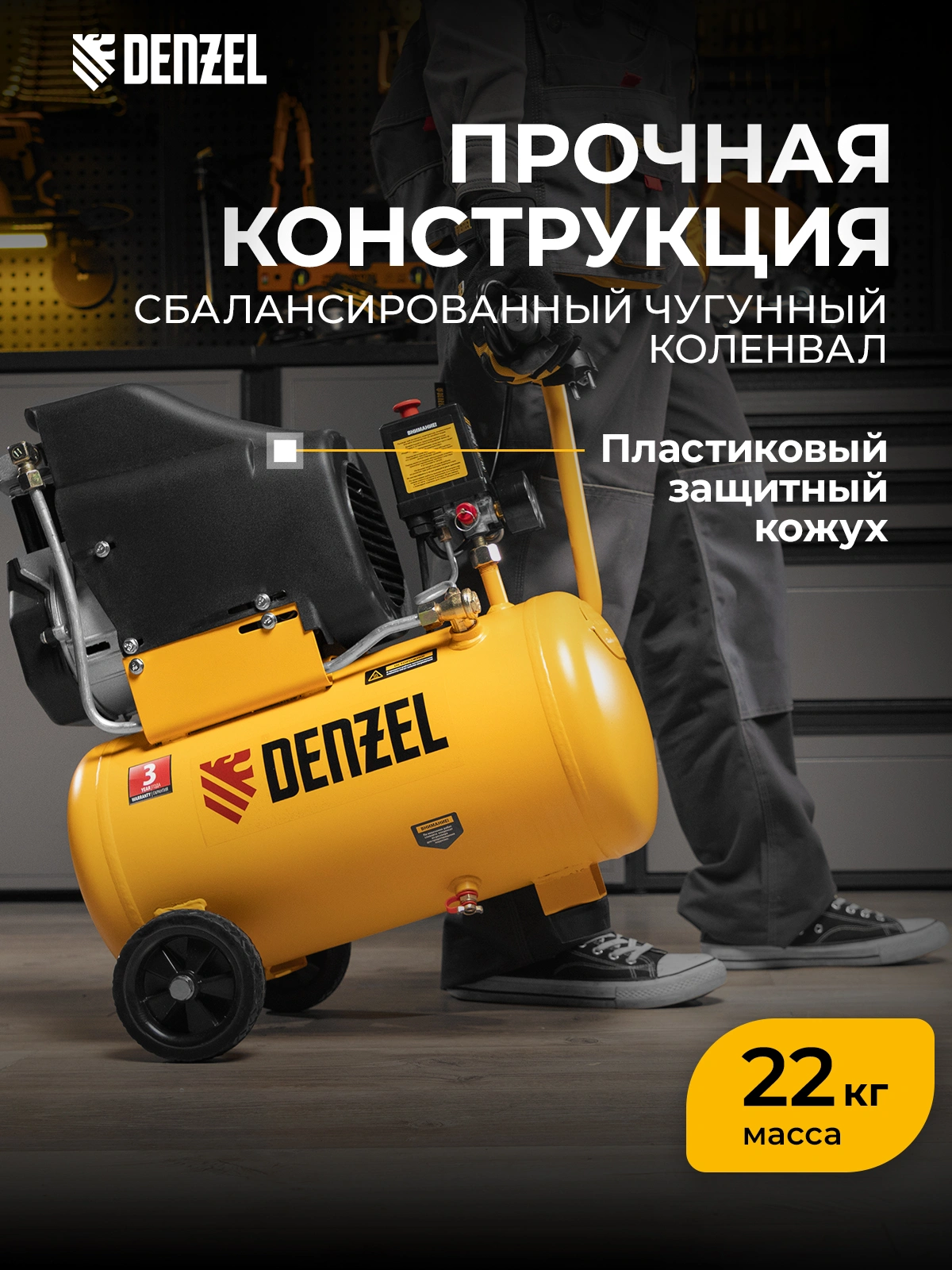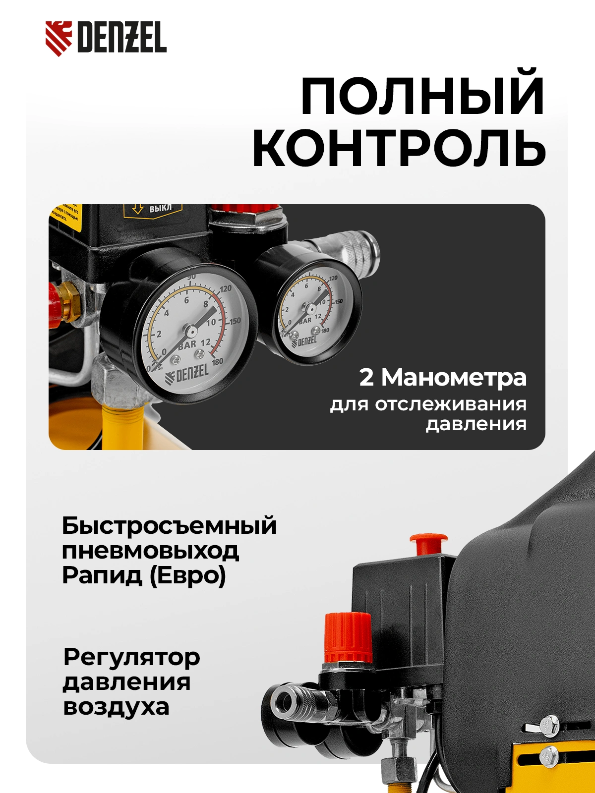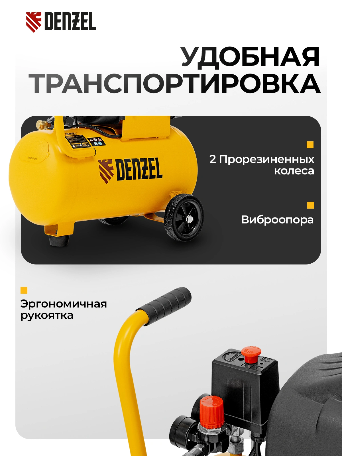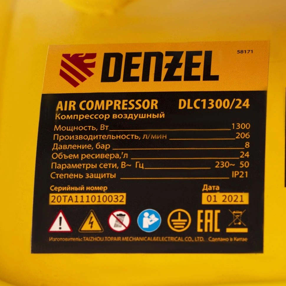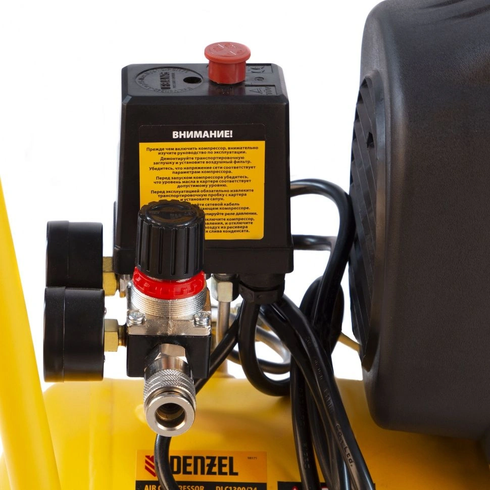 Компрессор поршневой Denzel DLC1300/24 безмасляный 206л/мин 24л 1300Вт желтый/черный
