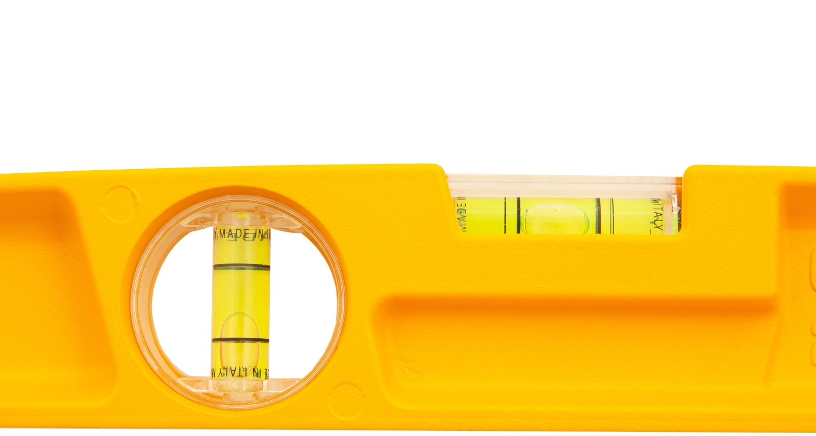 Корпус уровня изготовлен методом литья. Ударные площадки на обоих концах. Модель имеет два глазка для проверки отклонений по горизонтали и вертикали. Точность измерений 0.5 мм/м.