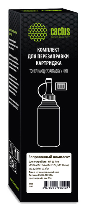 Тонер Cactus CS-RK-CF218A черный флакон 55гр. (в компл.:чип) для принтера HP LJ Pro M104/M132