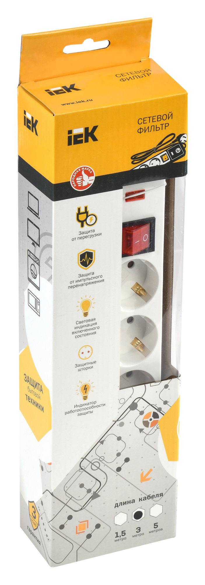 Сетевой фильтр IEK СФ-05К 3м (5 розеток) белый (коробка)
