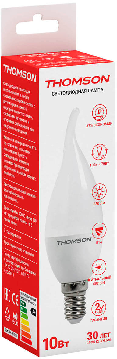 Лампа светодиодная Thomson TH-B2030 10Вт цок.:E14 свеча 220B 4000K св.свеч.бел.нейт. Tail Candle (упак.:1шт)