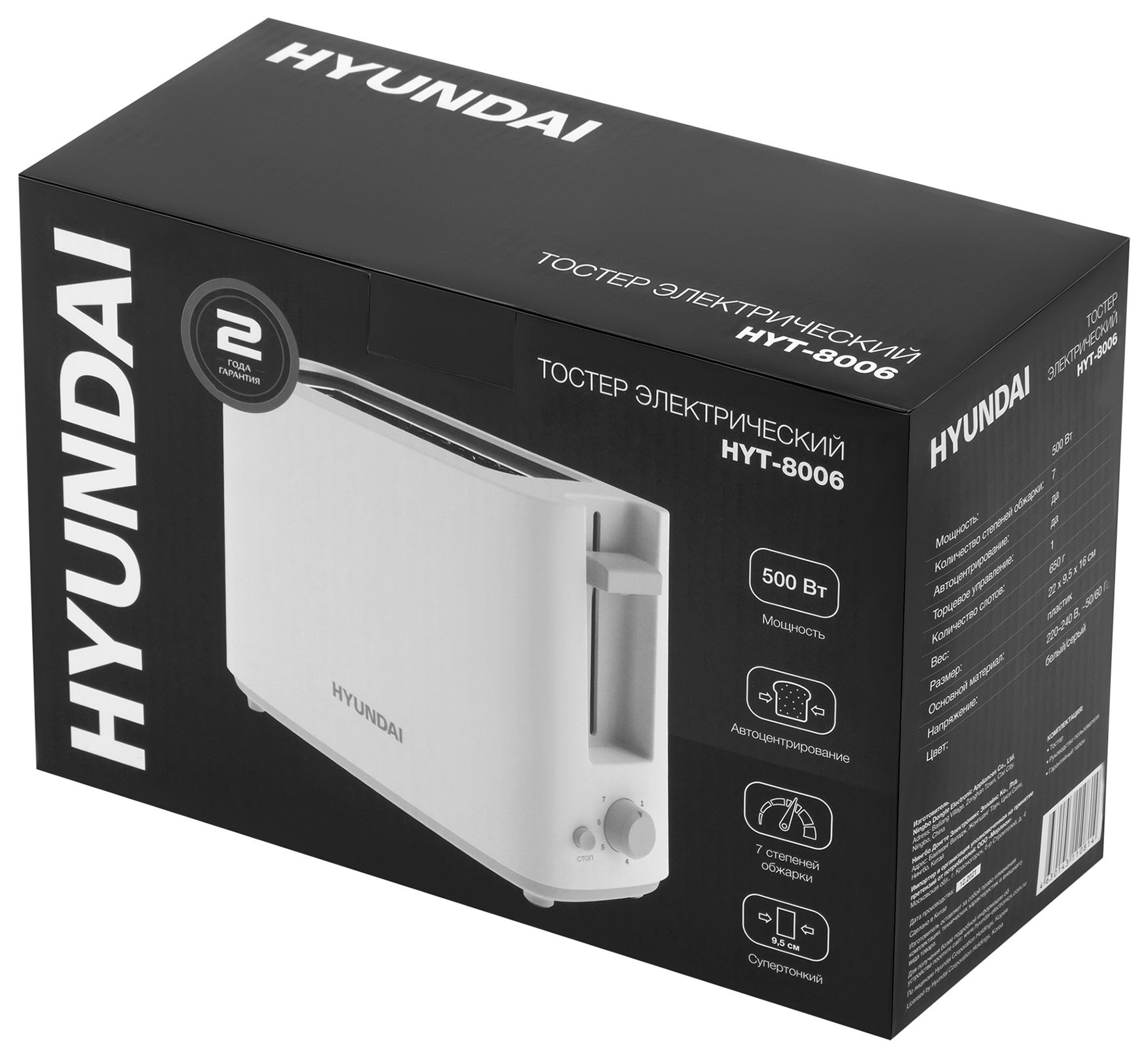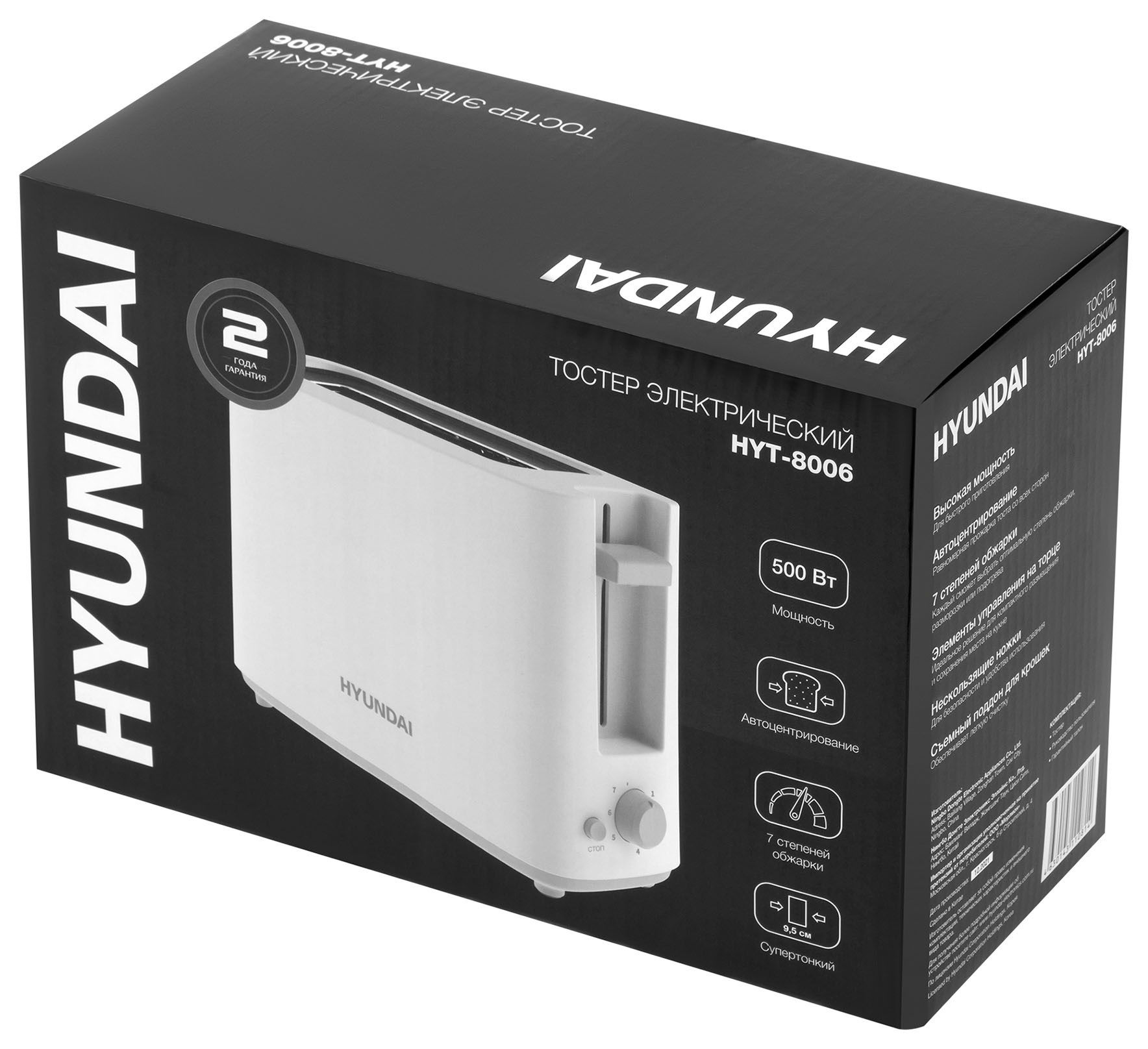 Тостер Hyundai HYT-8006 500Вт белый/серый