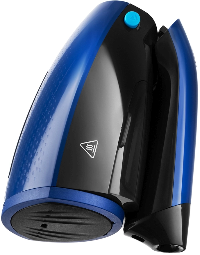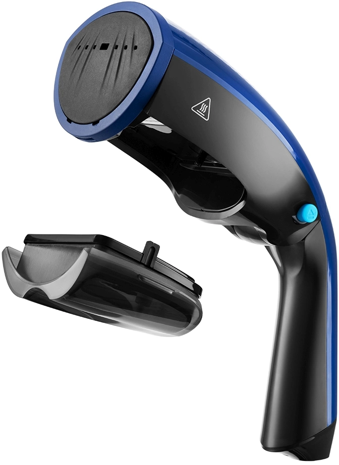 - ОсобенностиРучка отпаривателя складывается для более удобного и компактного хранения - в таком положении устройство занимает меньше места. На отпаривателе расположена кнопка складывания ручки, позволяющая сдвинуть ручку к резервуару для воды.