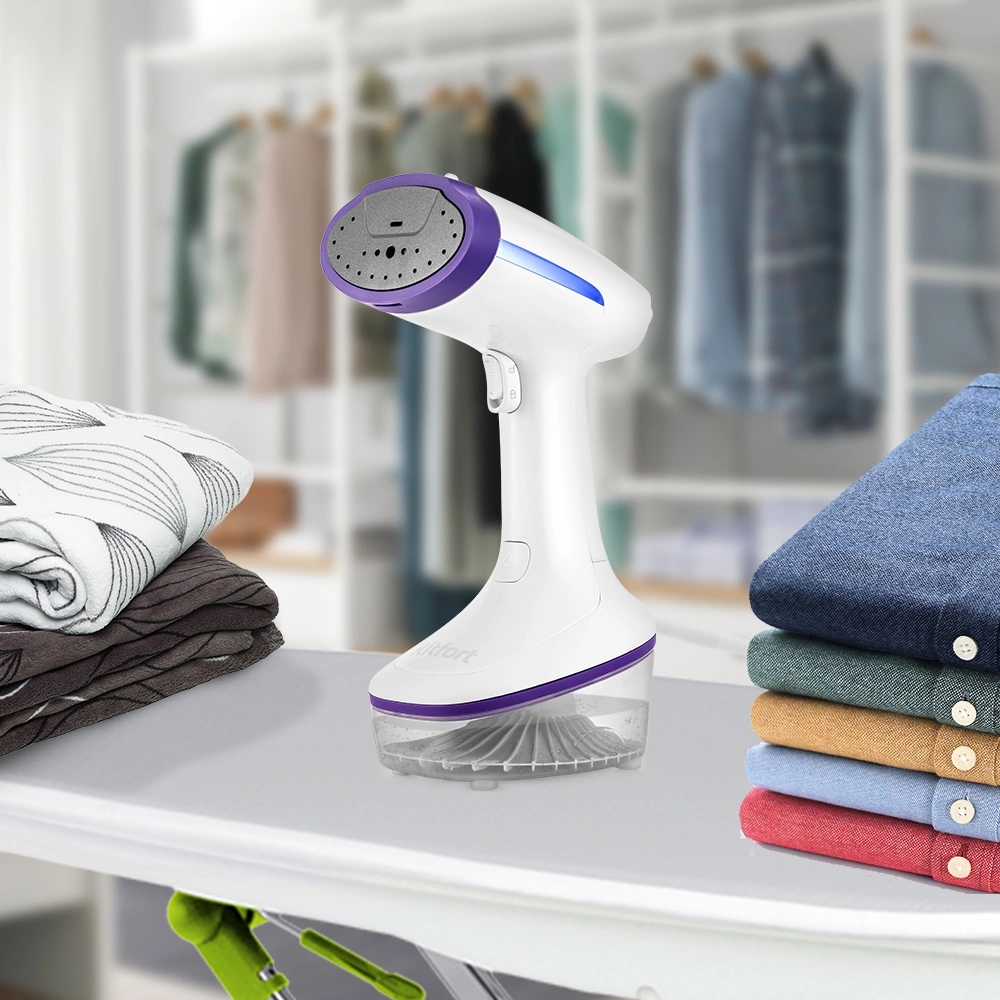 Ручной отпариватель КТ-989 позволяет быстро погладить любые изделия из текстиля, осуществляет тщательный уход за одеждой, обивкой мебели, занавесками и даже игрушками - освежает их, дезинфицирует и избавляет от запаха!