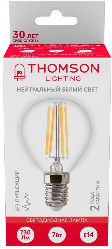 Лампа филам. Thomson Filament TH-B2084 7Вт цок.:E14 шар 220B св.свеч.бел.нейт. Globe (упак.:1шт)
