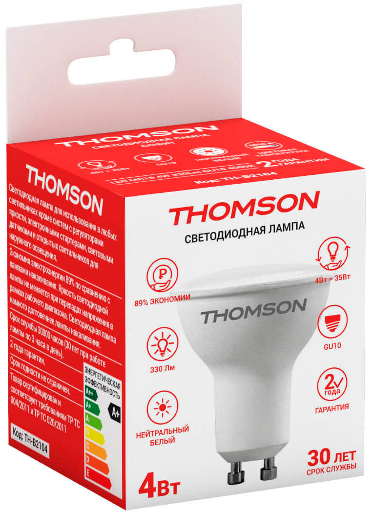 Лампа светодиодная Thomson TH-B2104 4Вт цок.:GU10 рефлек. 220B 4000K св.свеч.бел.нейт. MR16 (упак.:1шт)