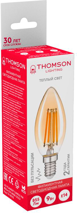 Лампа филам. Thomson Filament TH-B2115 9Вт цок.:E14 свеча 220B св.свеч.бел.теп. Candle (упак.:1шт)