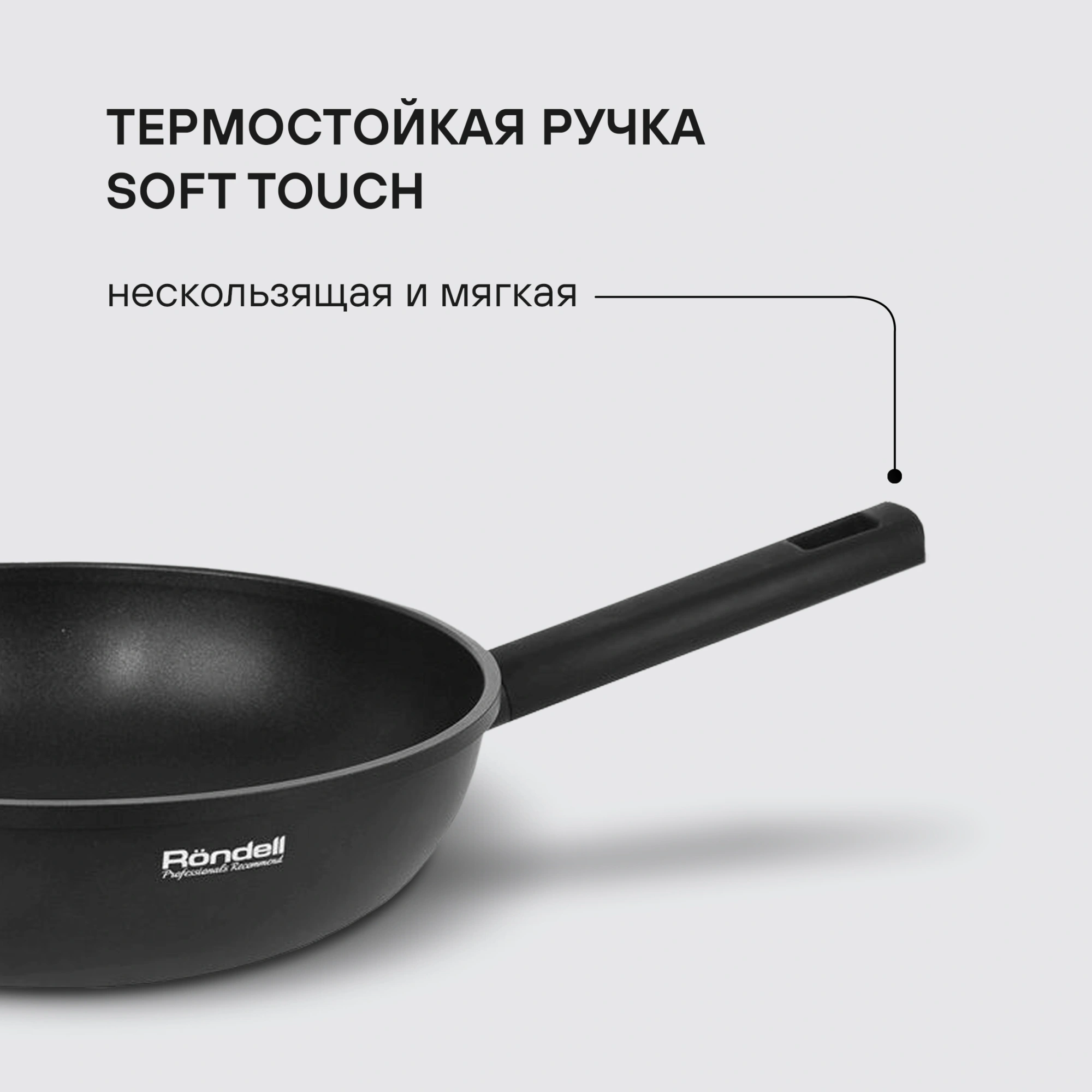 Сковорода ВОК (WOK) Rondell Trumpf RDA-1405 круглая 28см покрытие: Xylan Plus ручка несъемная (без крышки) черный