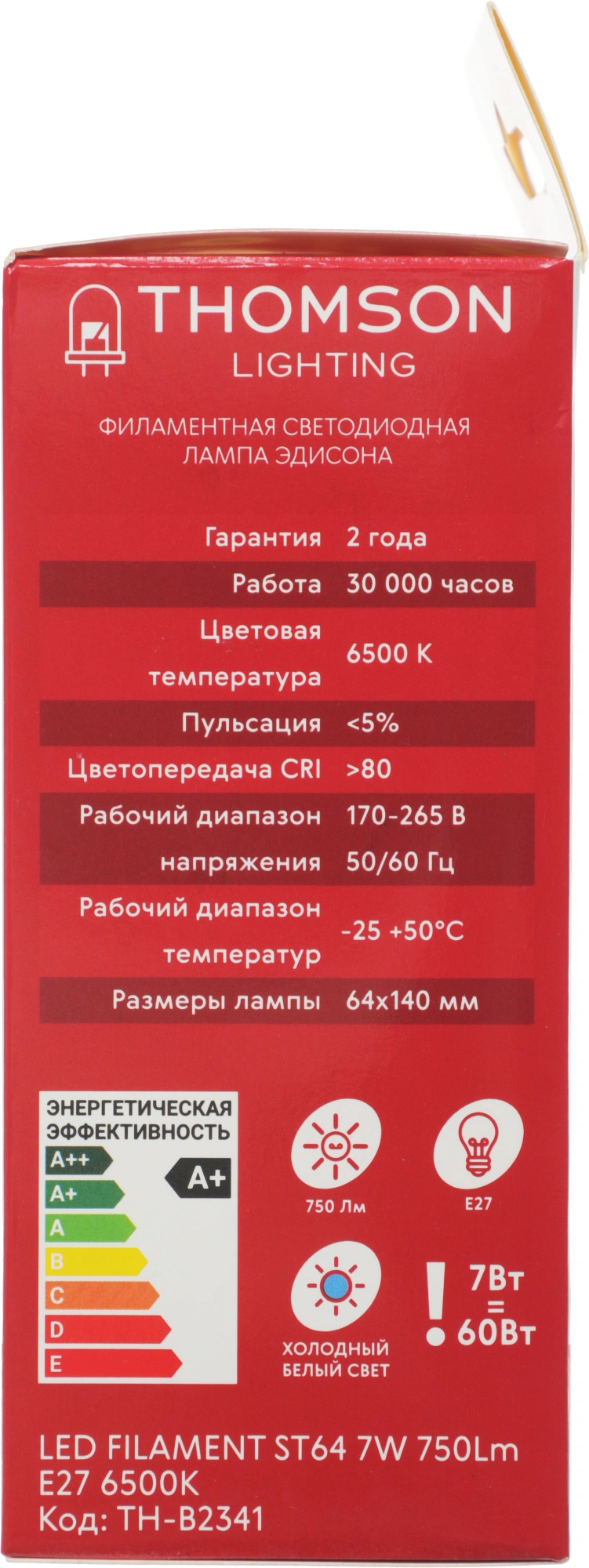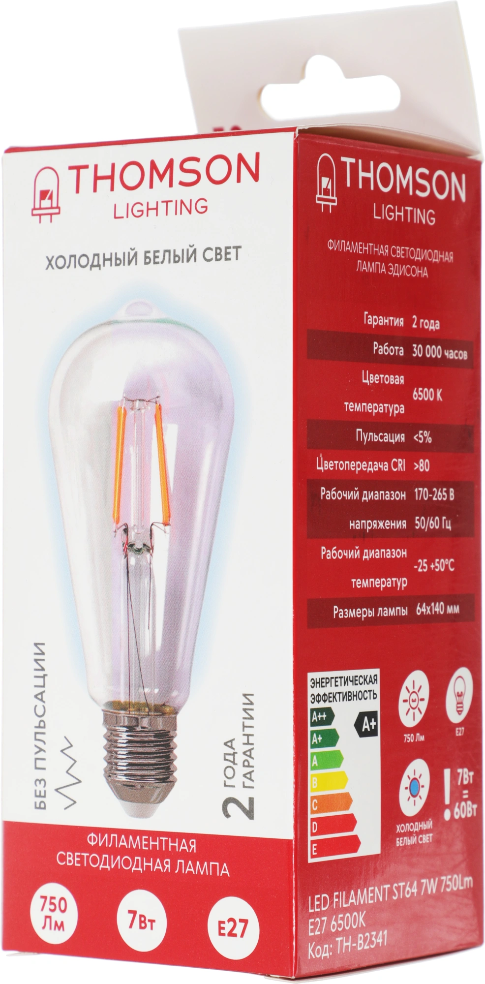 Лампа филам. Thomson Filament TH-B2341 7Вт цок.:E27 эдисон 220B св.свеч.бел.хол. ST64 (упак.:1шт)