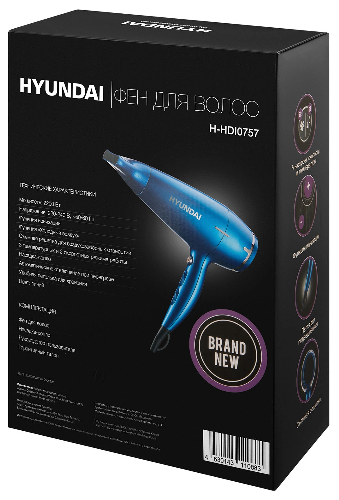 Фен Hyundai H-HDI0757 2200Вт синий
