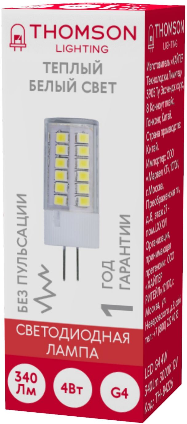 Лампа светодиодная Thomson TH-B4226 4Вт цок.:G4 капсул. 12B св.свеч.бел.теп. (упак.:1шт)