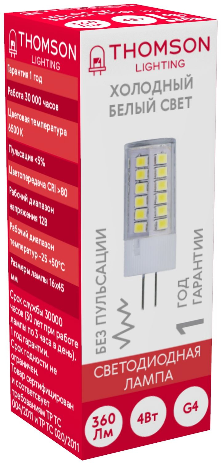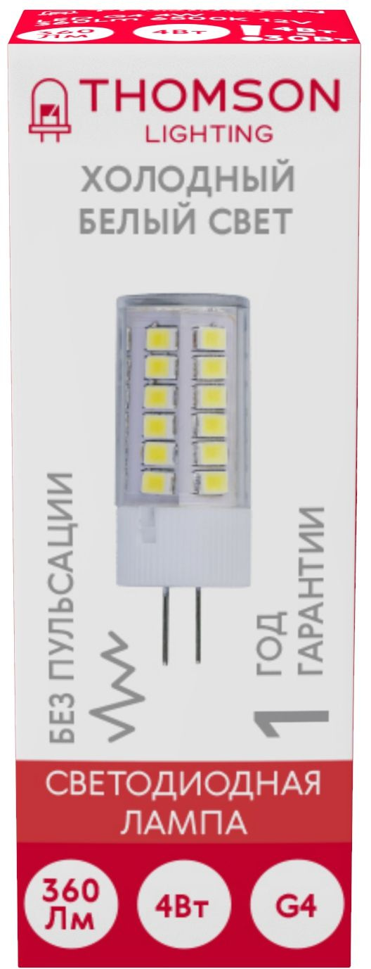 Лампа светодиодная Thomson TH-B4227 4Вт цок.:G4 капсул. 12B св.свеч.бел.хол. (упак.:1шт)