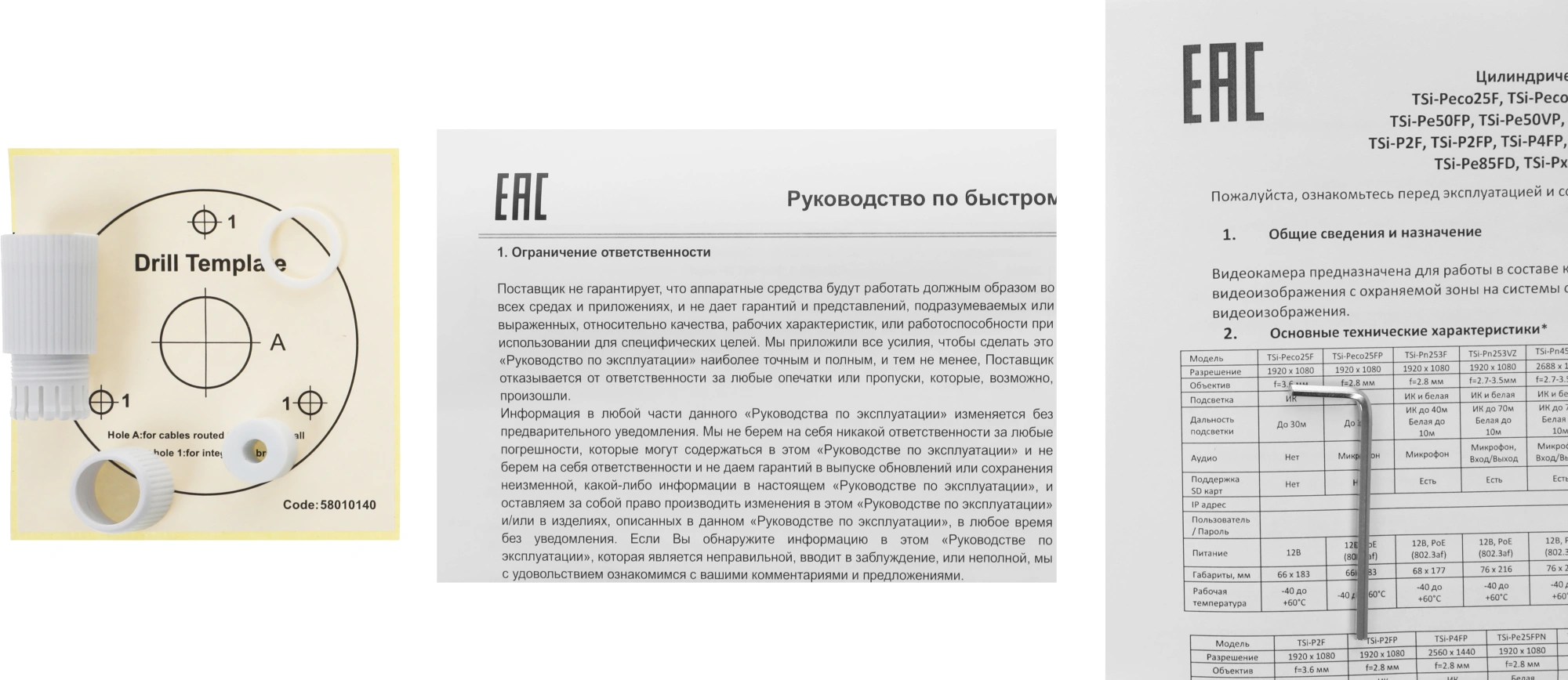 - КомплектацияIP-камера Инструкция Упаковочная тара