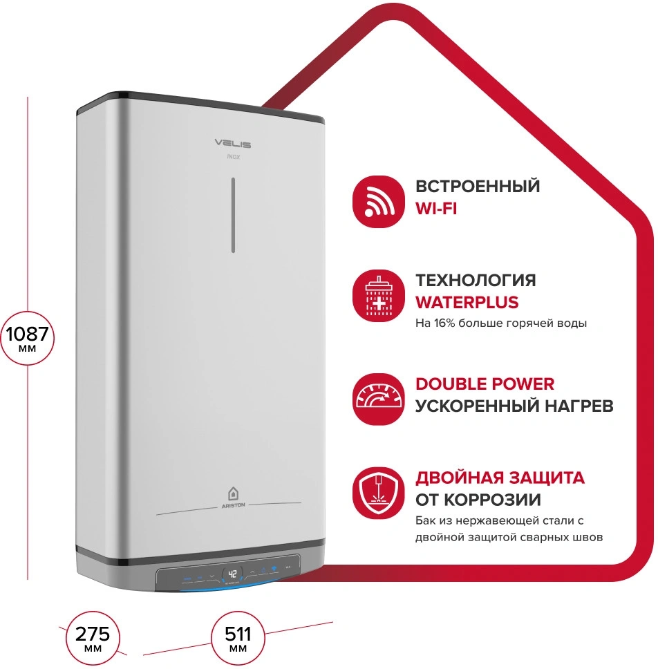- ОсобенностиВстроенный Wi-Fi модуль. +15% горячей воды за то же время благодаря технологии WaterPlus. Cистема автодиагностики. Трехступенчатая электронная система защиты. Увеличенный магниевый анод для дополнительной защиты. Профессиональная система защиты от бактерий.