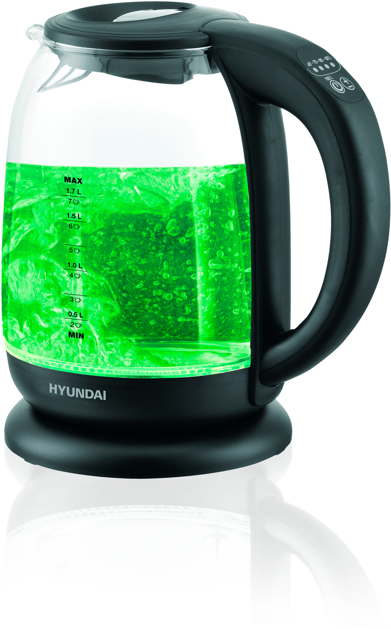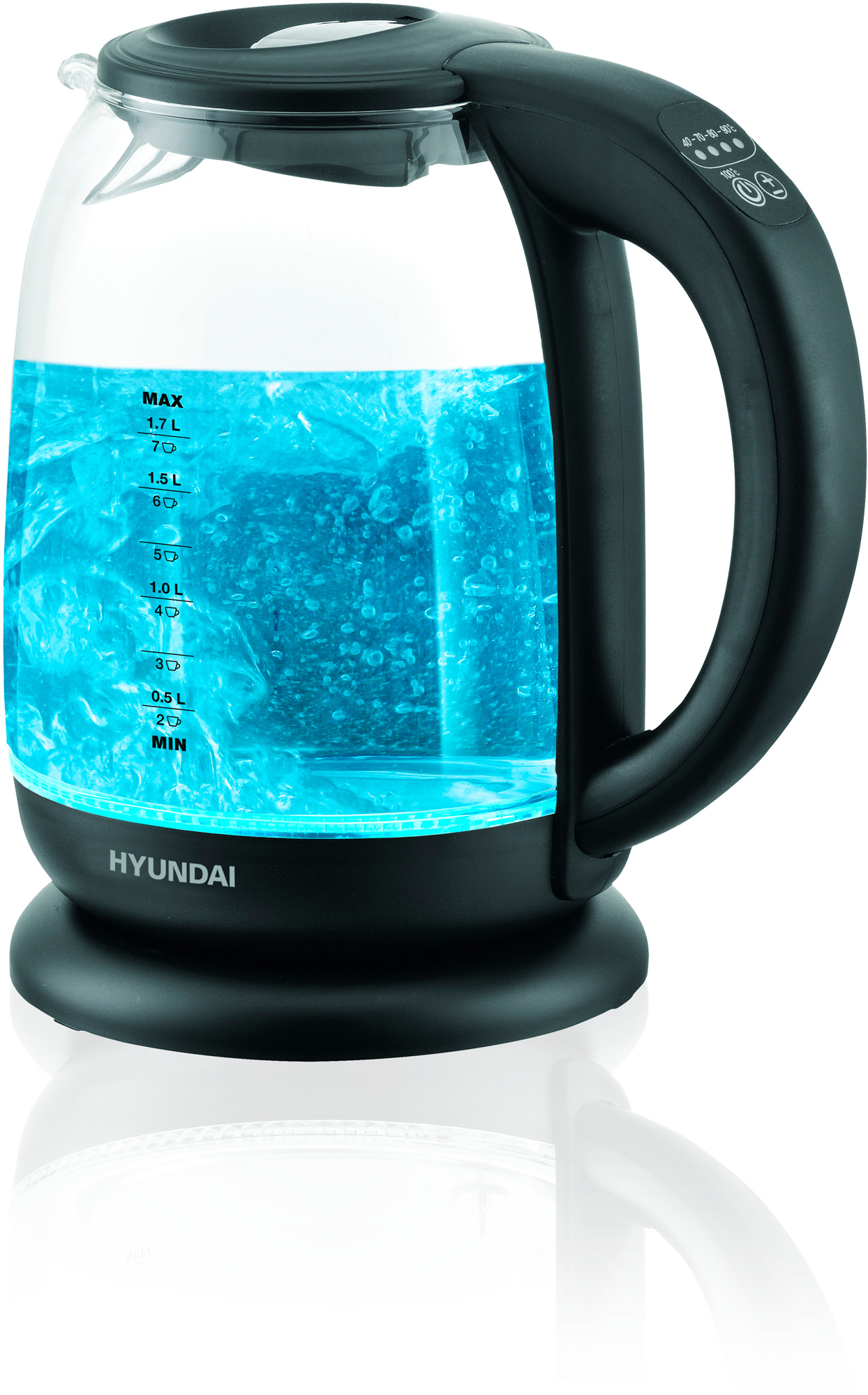 Чайник электрический Hyundai HYK-S3809 1.7л. 2200Вт черный корпус: стекло/пластик