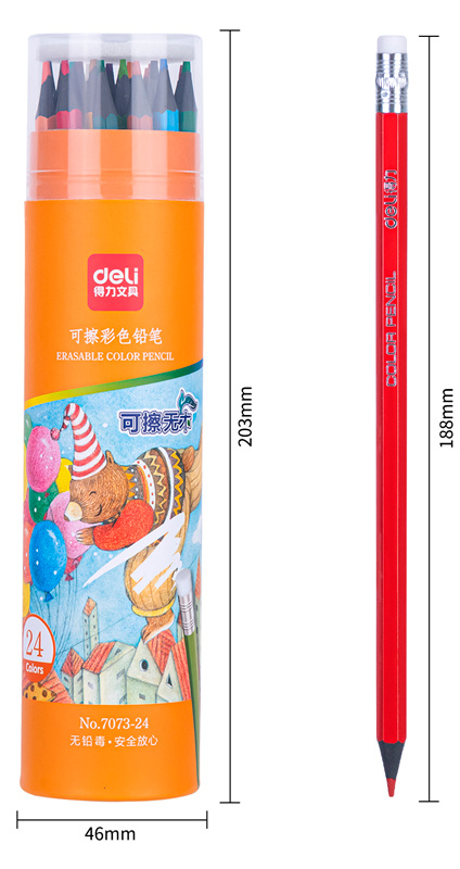 Карандаши цв. Deli 7073-24 пластик 24цв. туба пл. ластик