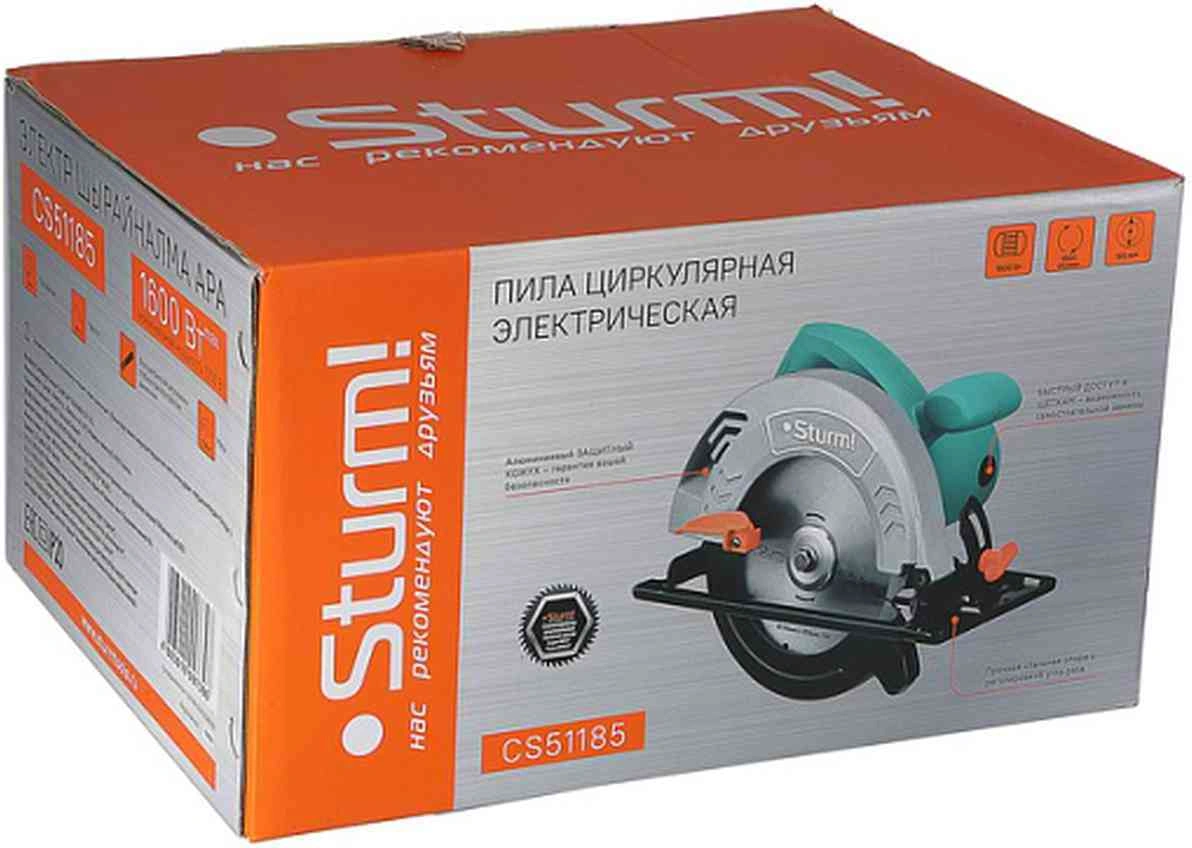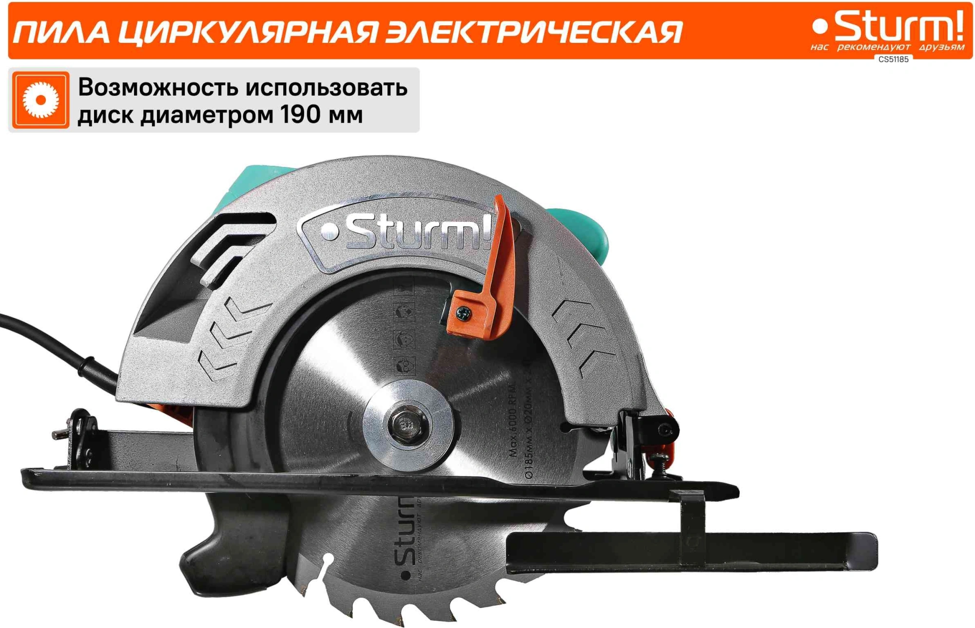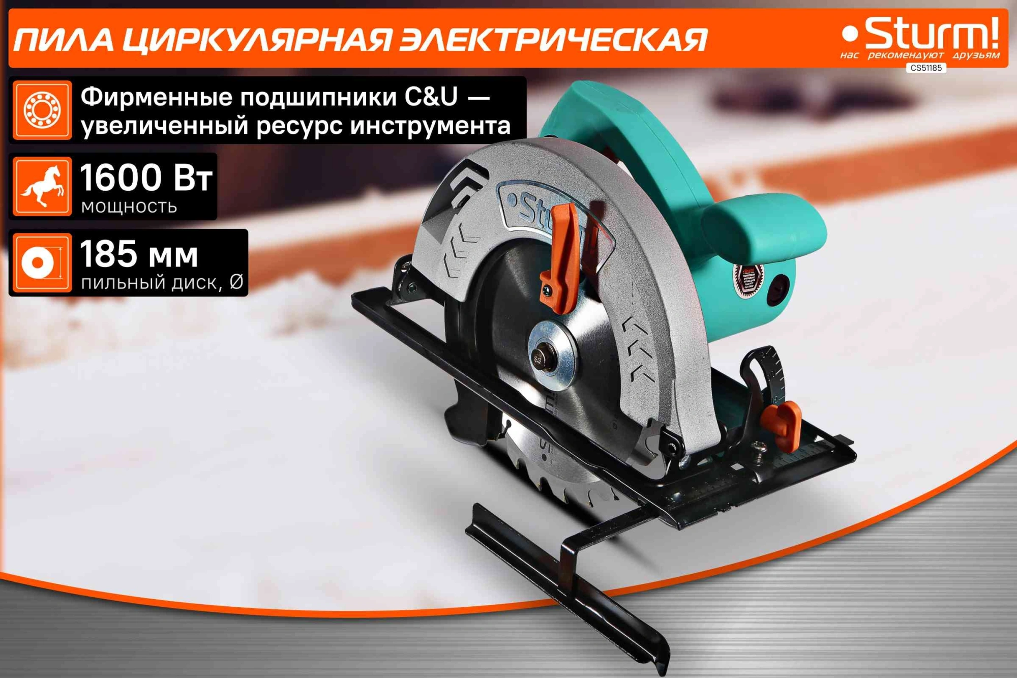 Циркулярная пила (дисковая) Sturm! CS51185 1600Вт (ручная) D диска.:185мм