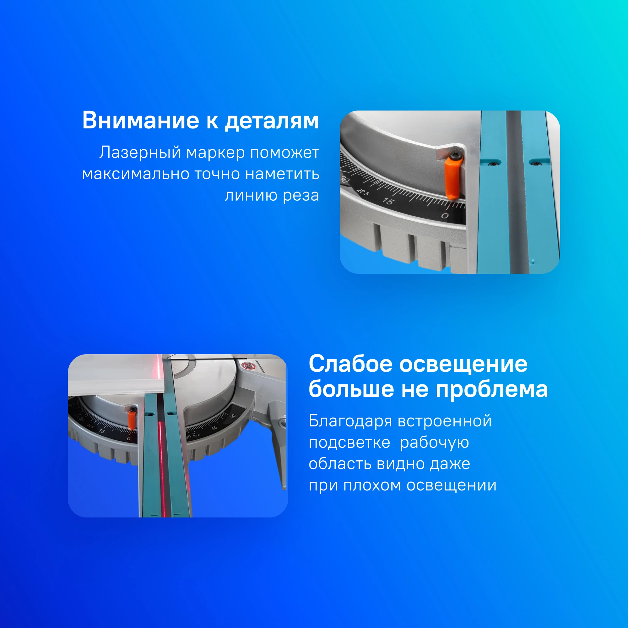 - Функциональные особенностигоризонтальное перемещение (протяжка), ограничитель глубины реза, плавный пуск, поддержание постоянных оборотов под нагрузкой