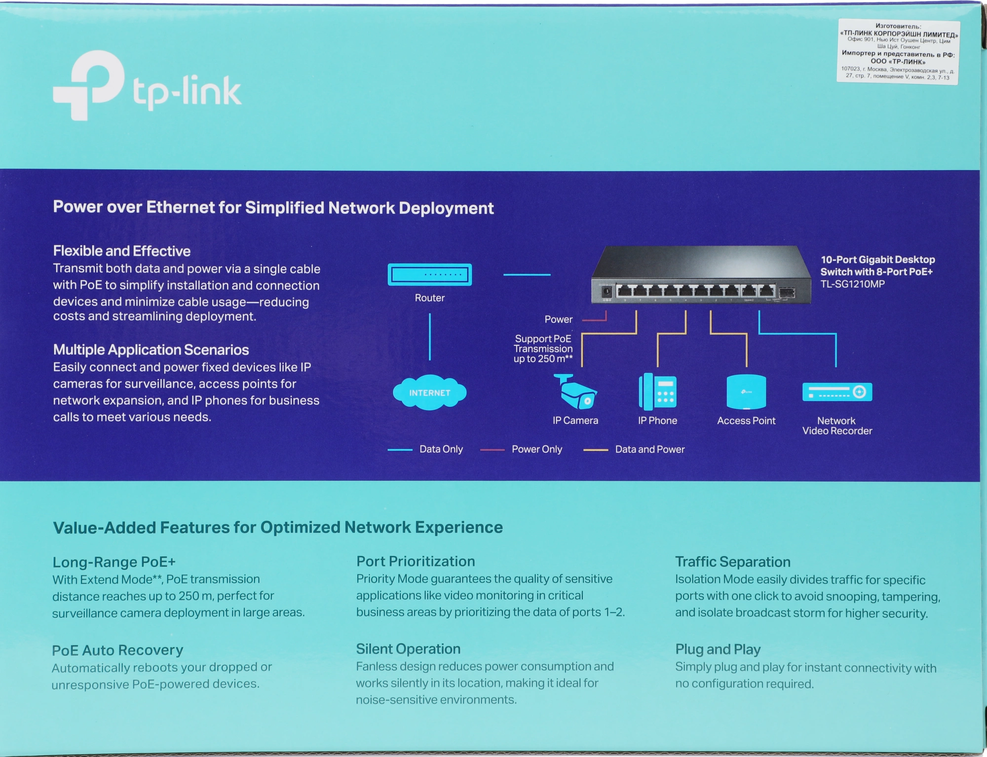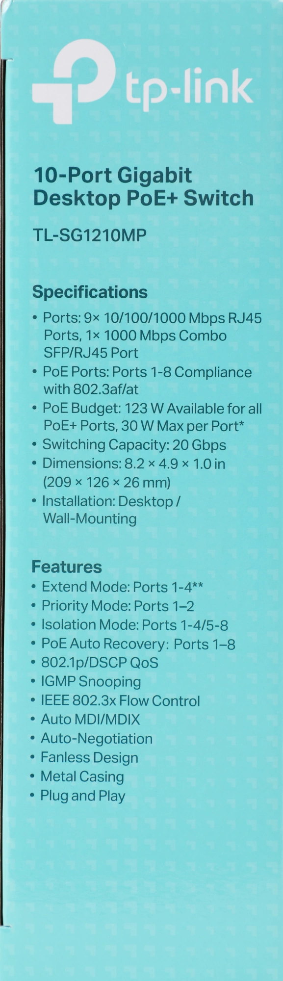 Коммутатор TP-Link TL-SG1210MP 9x1Гбит/с 1xКомбо(1000BASE-T/SFP) 8PoE+ 123W неуправляемый