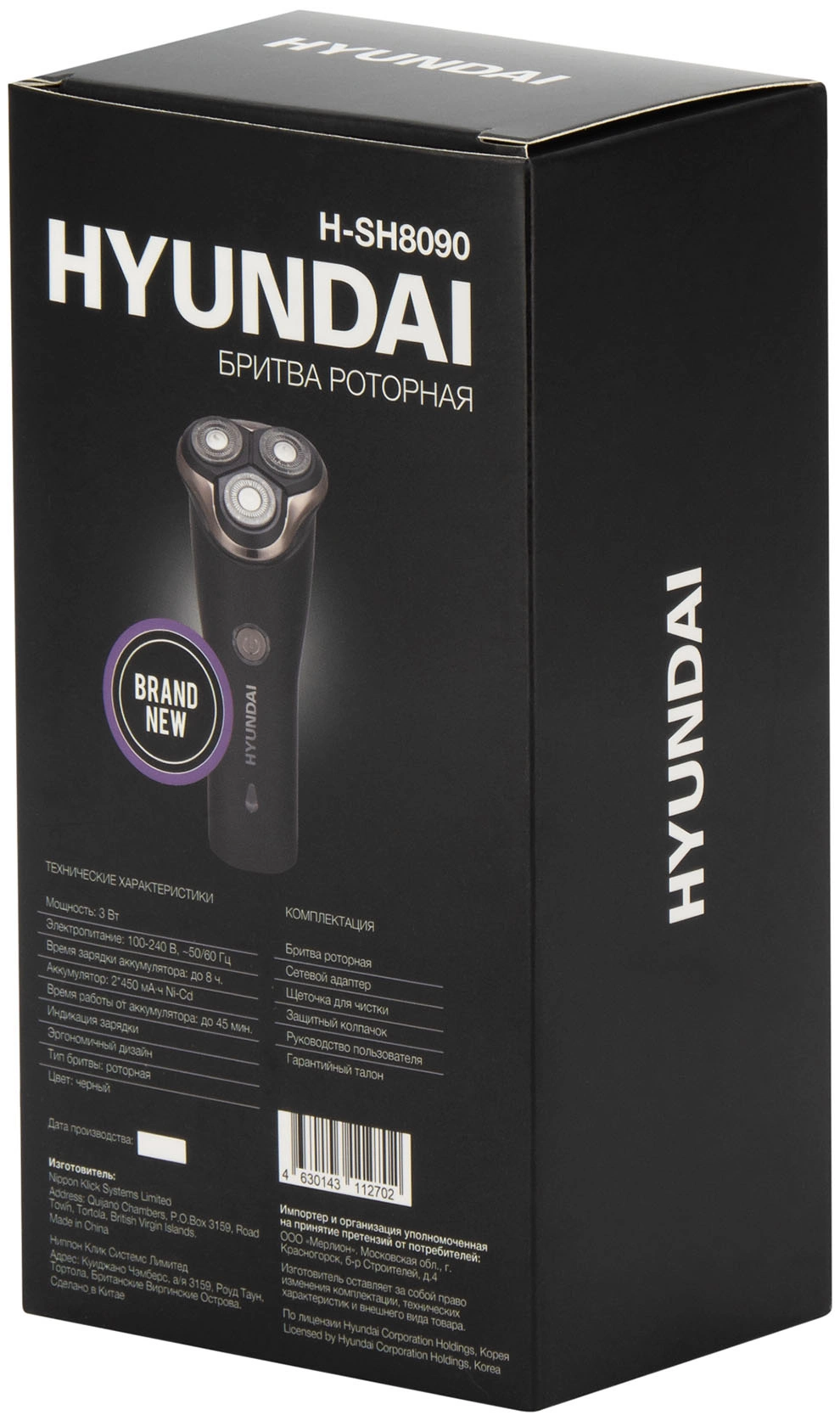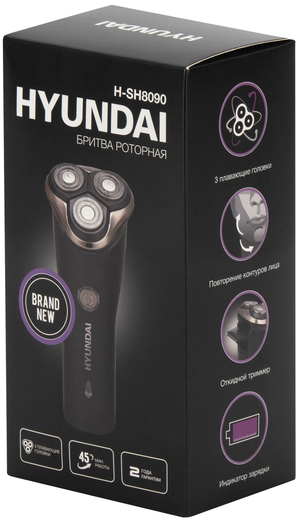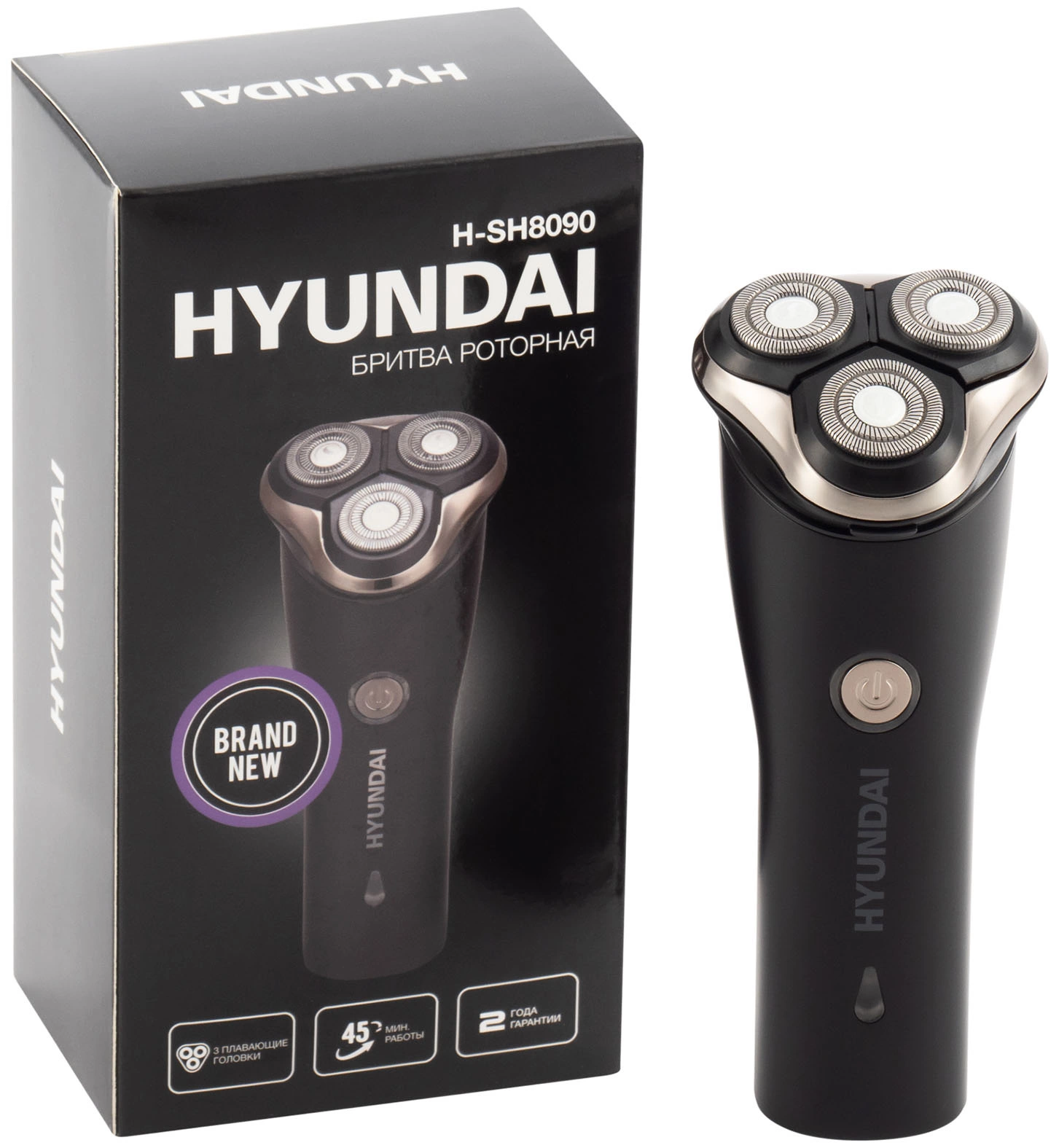 Бритва роторная Hyundai H-SH8090 реж.эл.:3 питан.:аккум. черный/золотистый
