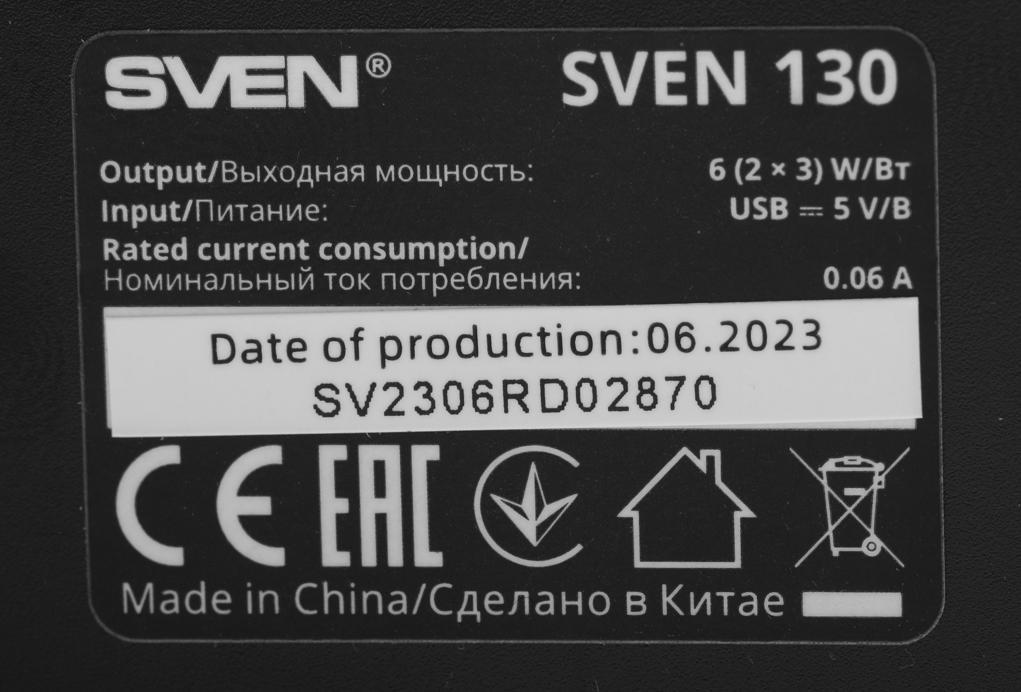 Колонки Sven 130 2.0 черный 6Вт портативные