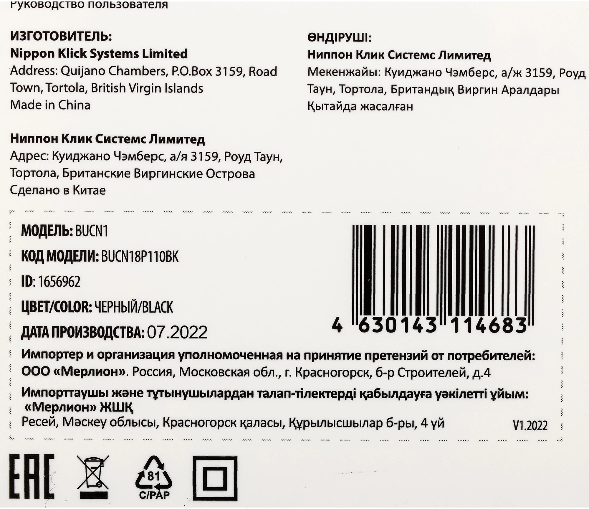 | Код производителя | BUCN18P110BK |