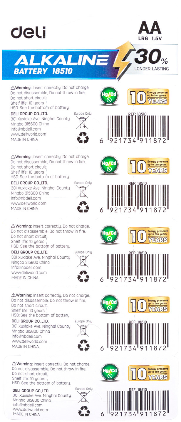 Батарея Deli E18510 AA блистер