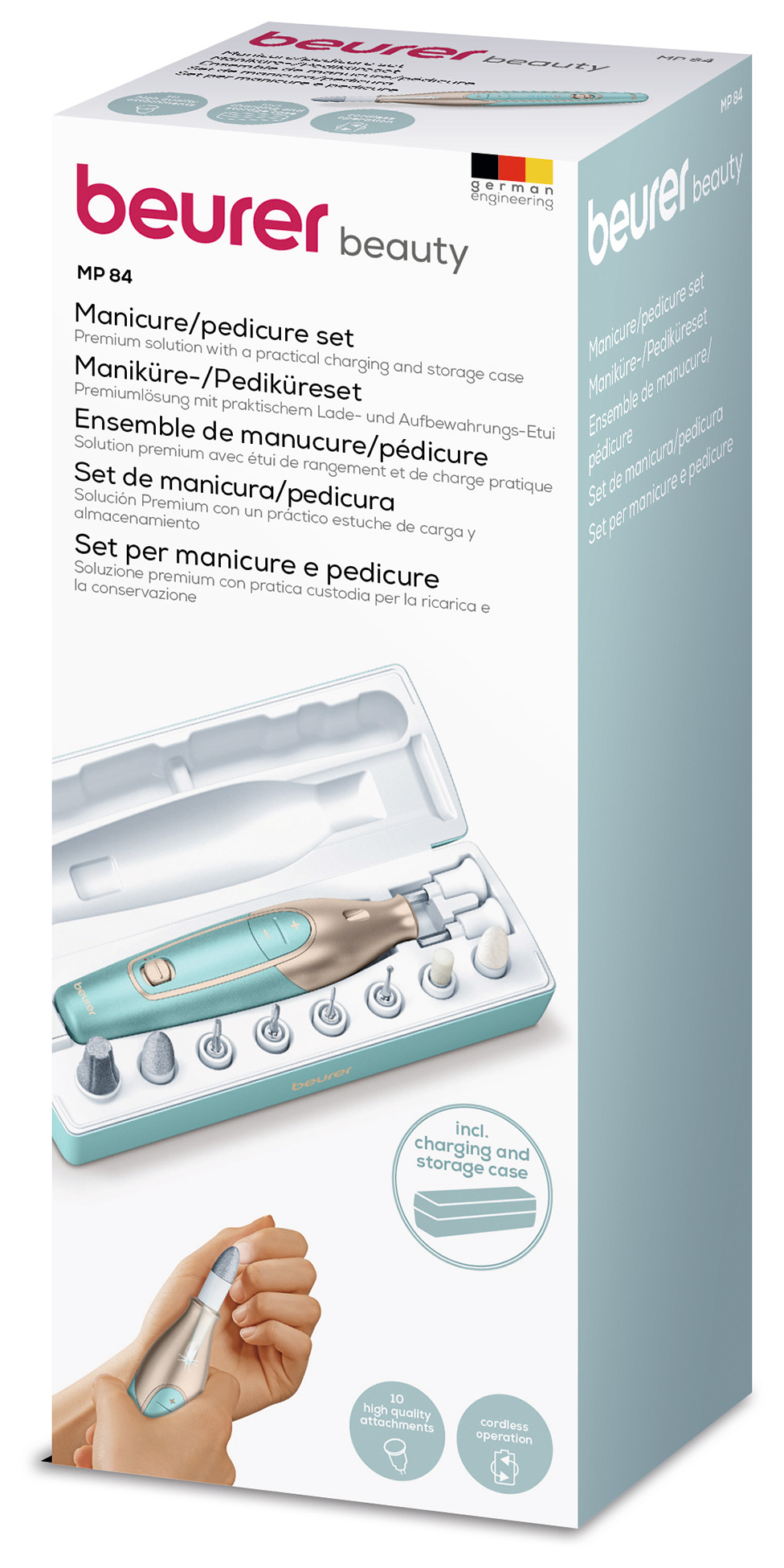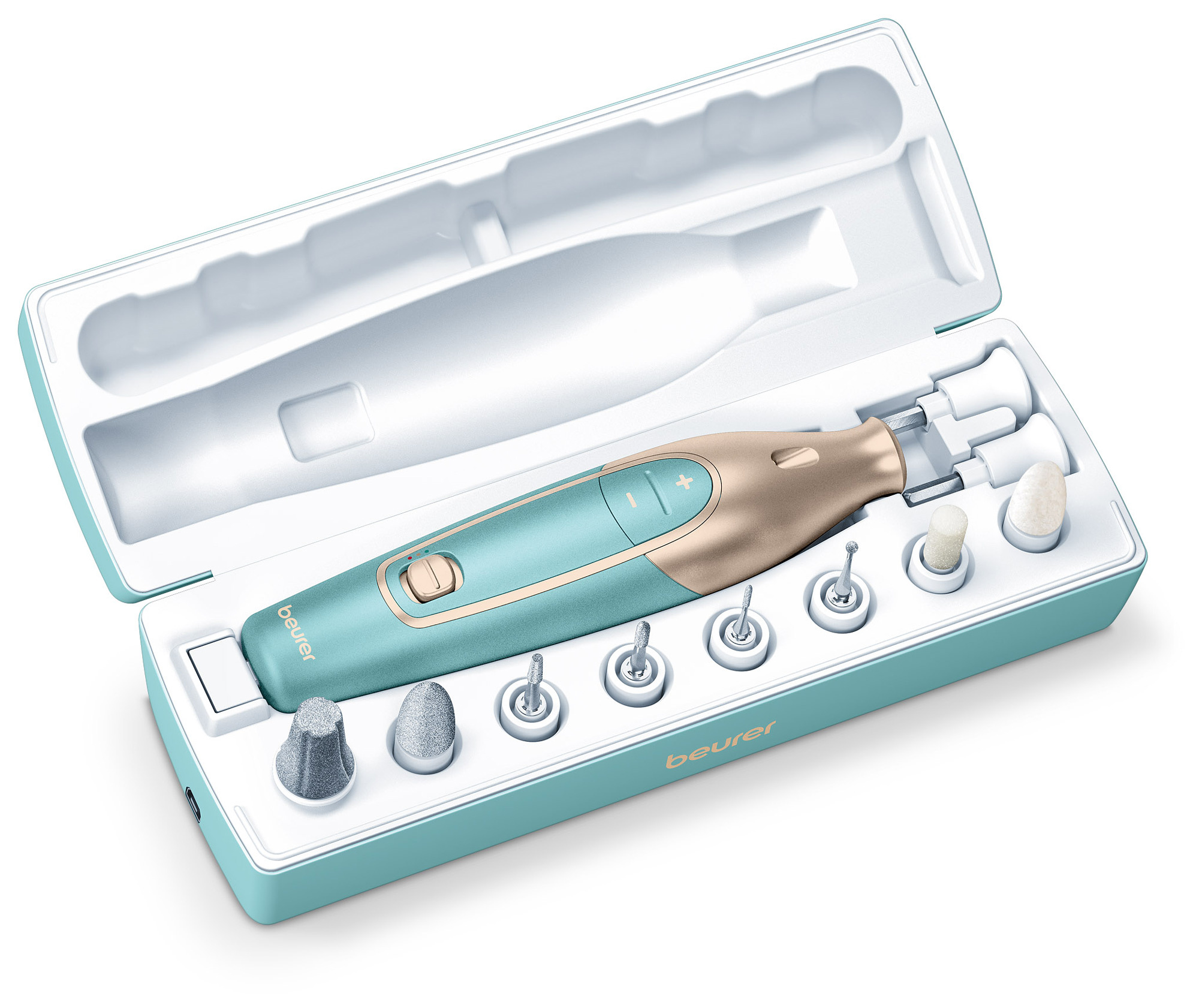 Маникюрно-педикюрный набор Beurer MP84 насадок в компл.:10шт золотистый/бирюзовый