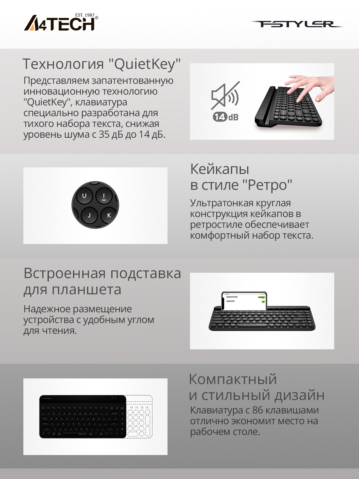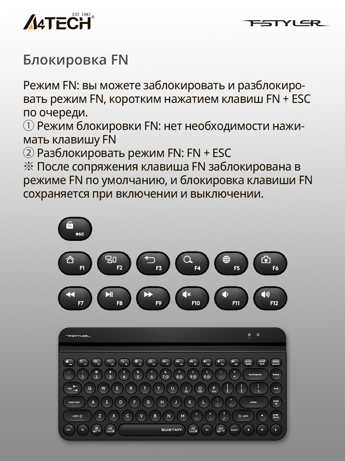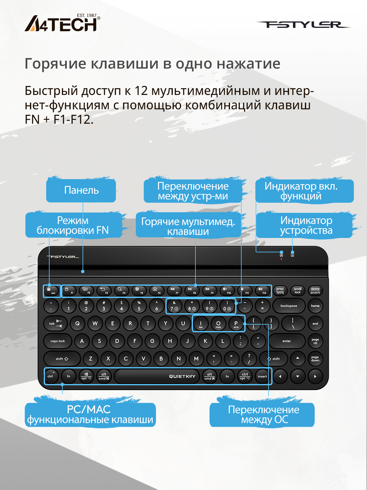 Клавиатура A4Tech Fstyler FBK30 черный USB беспроводная BT/Radio slim Multimedia (FBK30 BLACK)