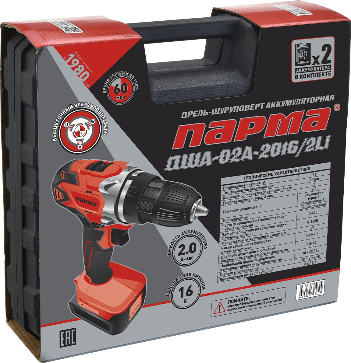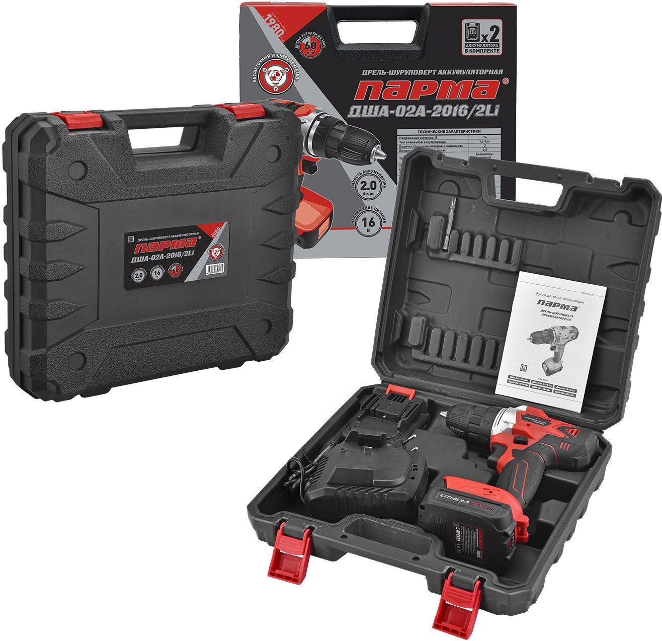 Дрель-шуруповерт Парма ДША-02А-2016/2Li аккум. патрон:быстрозажимной (кейс в комплекте) (02.021.00010)