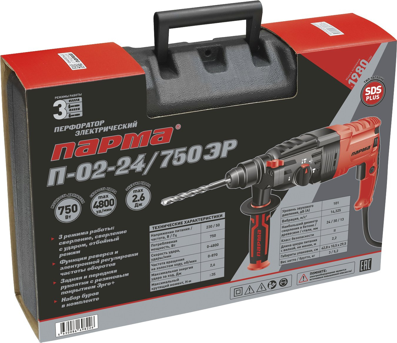 Перфоратор Парма П-02-24/750ЭР патрон:SDS-plus уд.:2.6Дж 750Вт (кейс в комплекте)