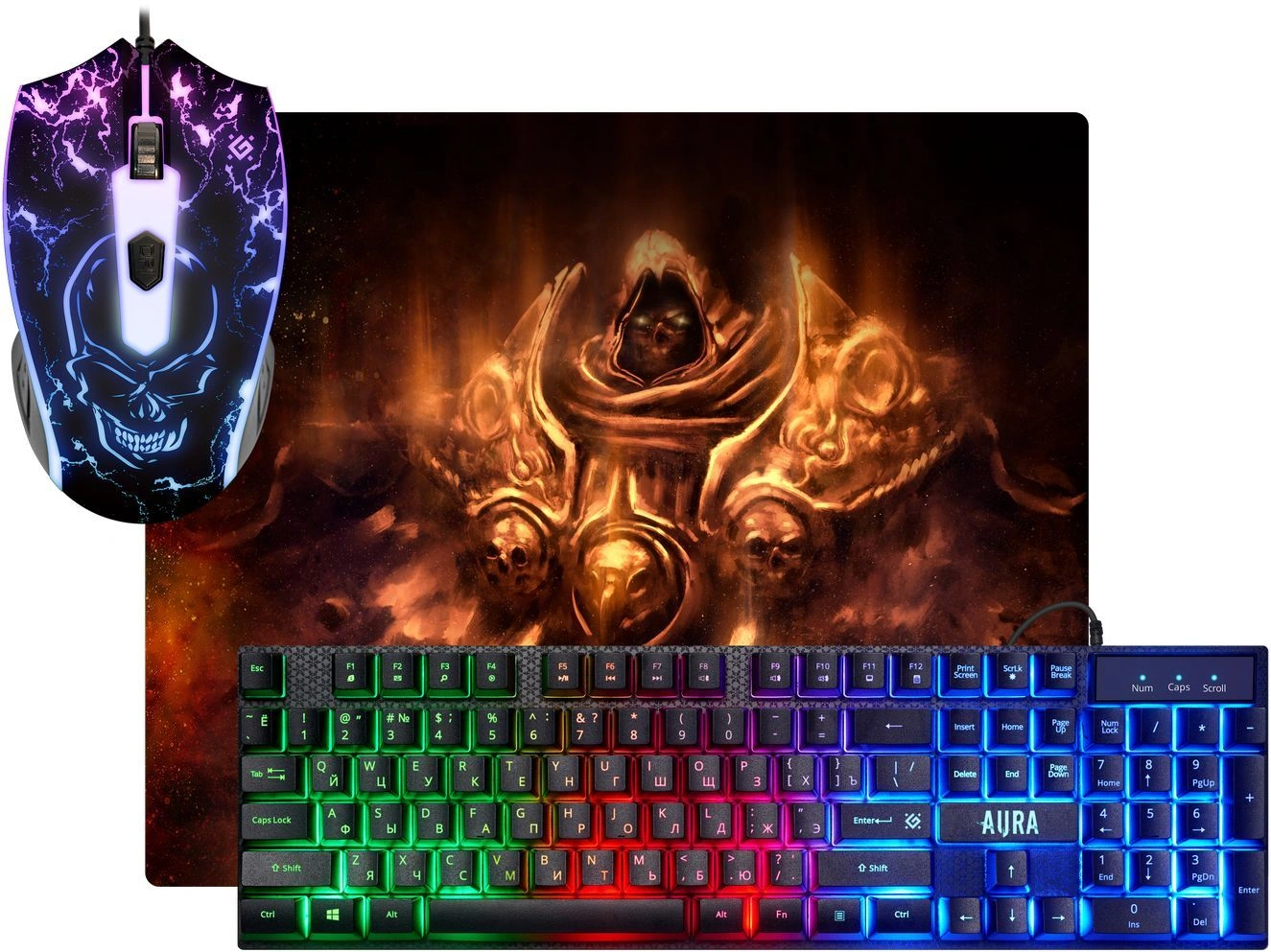 Клавиатура + мышь Defender Aura MKP-117 клав:черный мышь:черный USB slim LED (52117)