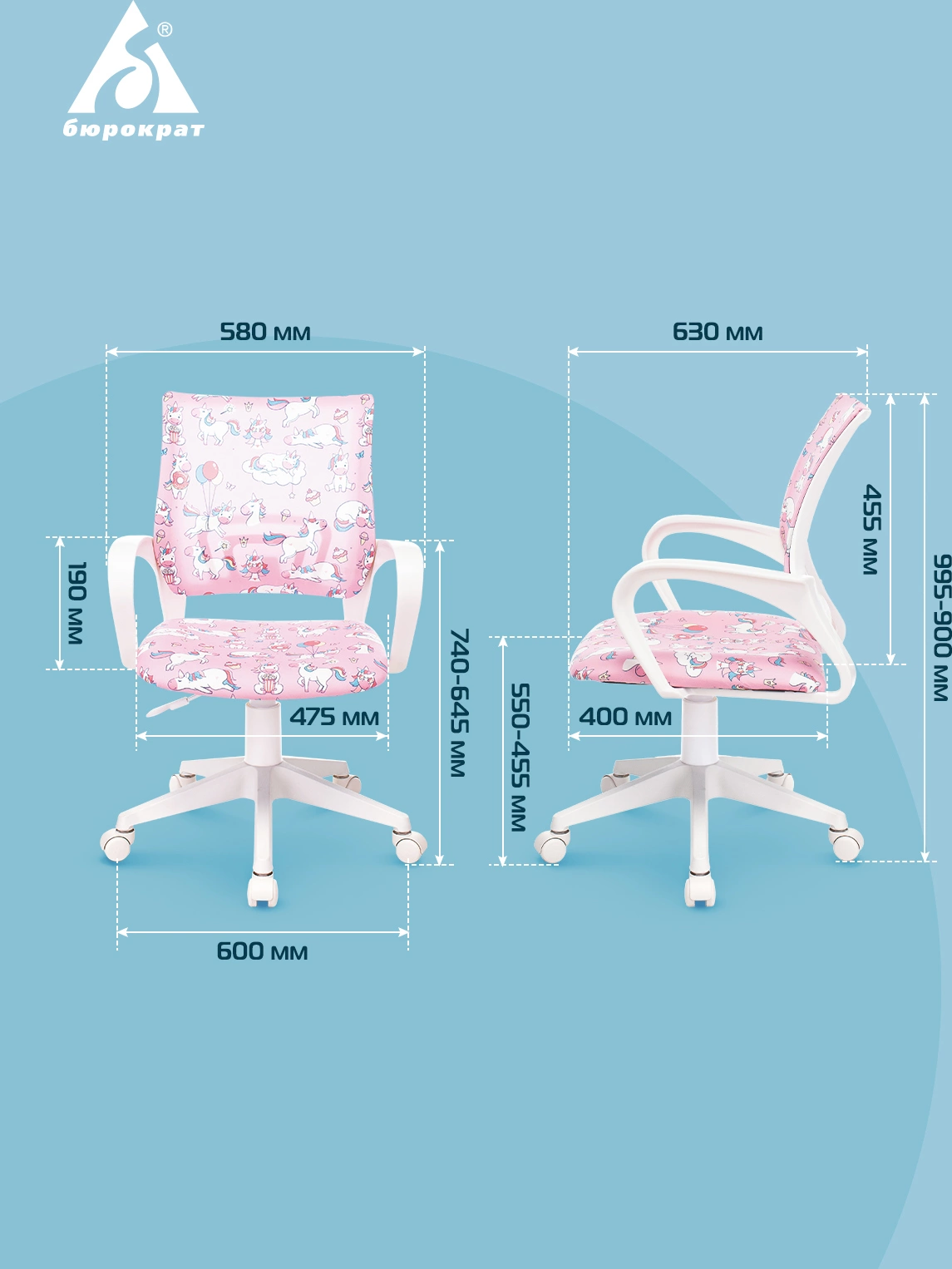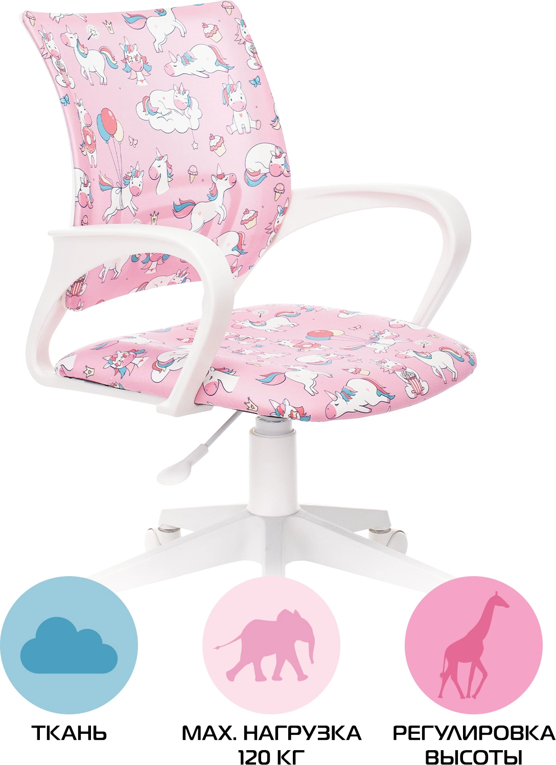 Кресло детское Бюрократ BUROKIDS 1 W розовый единороги крестов. пластик пластик белый