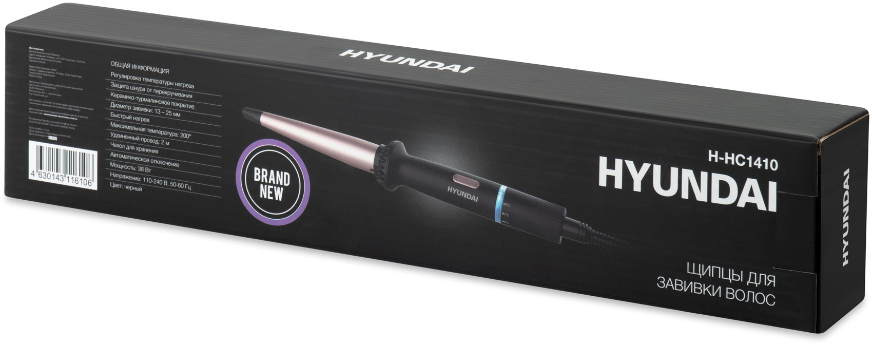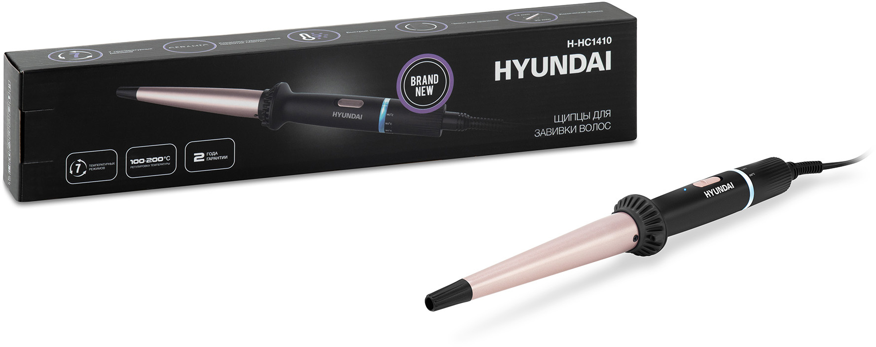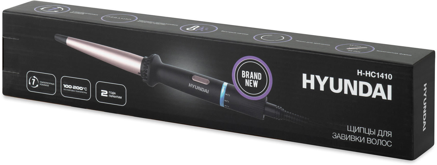 Щипцы Hyundai H-HC1410 40Вт черный макс.темп.:200С покрытие:керамико-турмалиновое