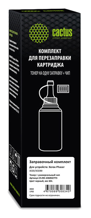 Тонер Cactus CS-RK-106R02773 черный флакон 60гр. (в компл.:чип) для принтера 106R02773