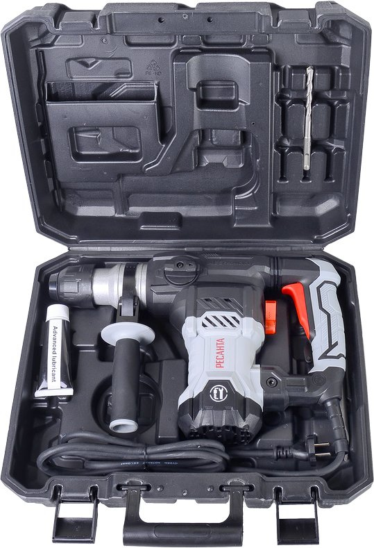 - Комплект поставкиПерфоратор, боковая рукоятка, бур, долото, смазка ударного механизма, ключ для пластиковой заглушки, паспорт, кейс пластмассовый.