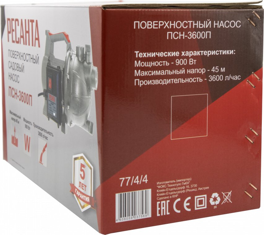 Насос садовый Ресанта ПСН-3600П 900Вт 3600л/час центробежный (77/4/4)