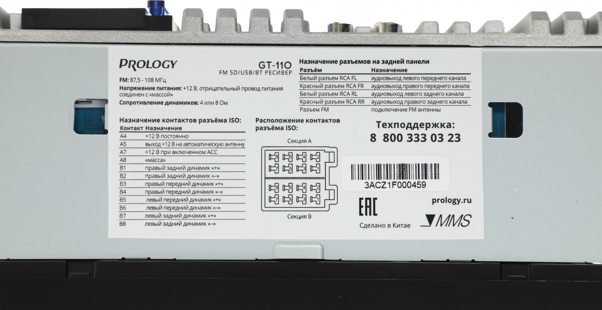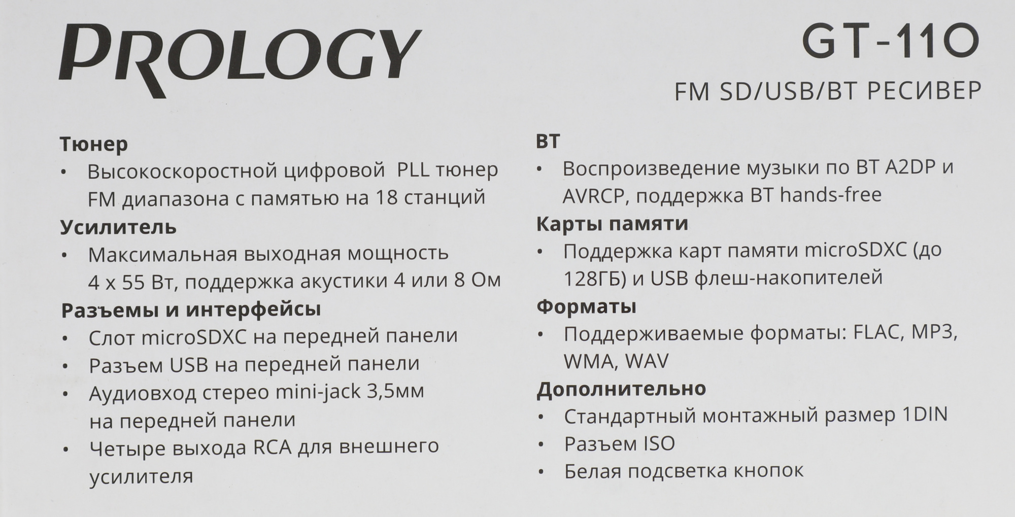 Автомагнитола Prology GT-110 1DIN 4x55Вт v4.2 (PRGT110)