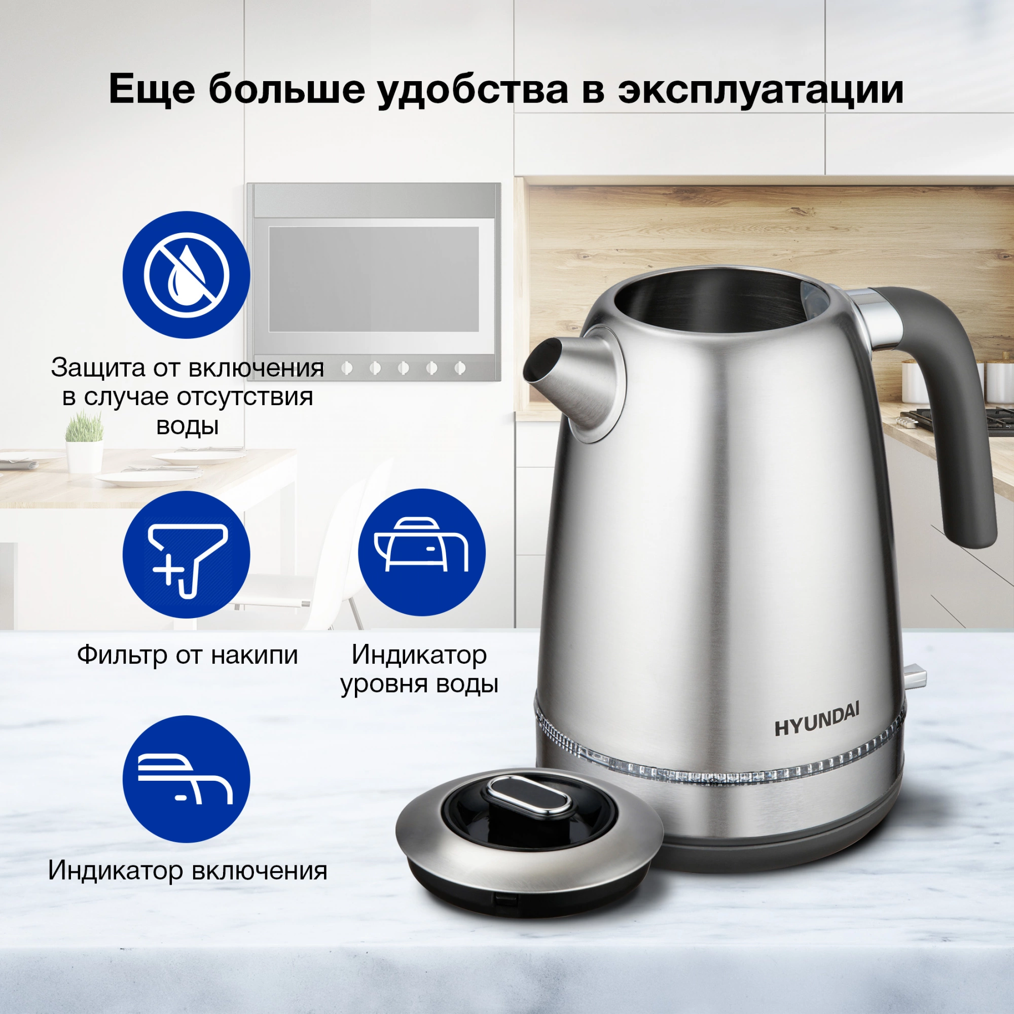 Чайник электрический Hyundai HYK-S5806 1.7л. 2200Вт серебристый матовый/черный корпус: металл