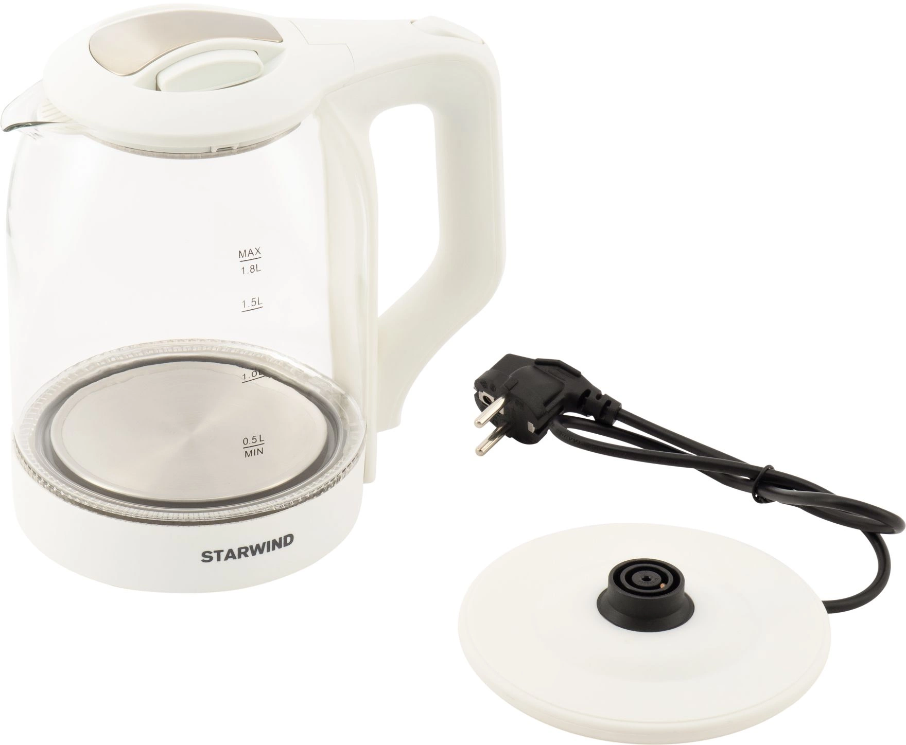 Чайник электрический Starwind SKG1056 1.8л. 2000Вт белый/прозрачный корпус: стекло