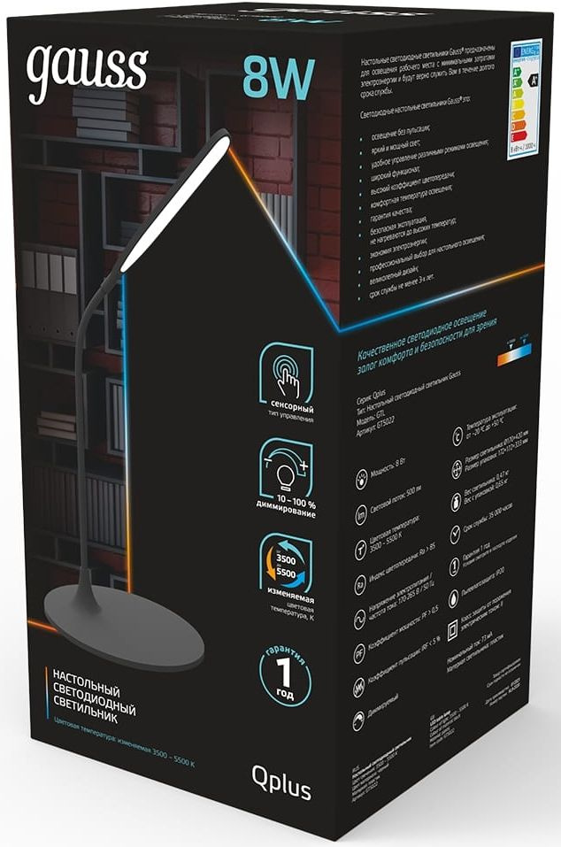 Светильник Gauss GTL502 (GT5022) настольный на подставке черный 8Вт