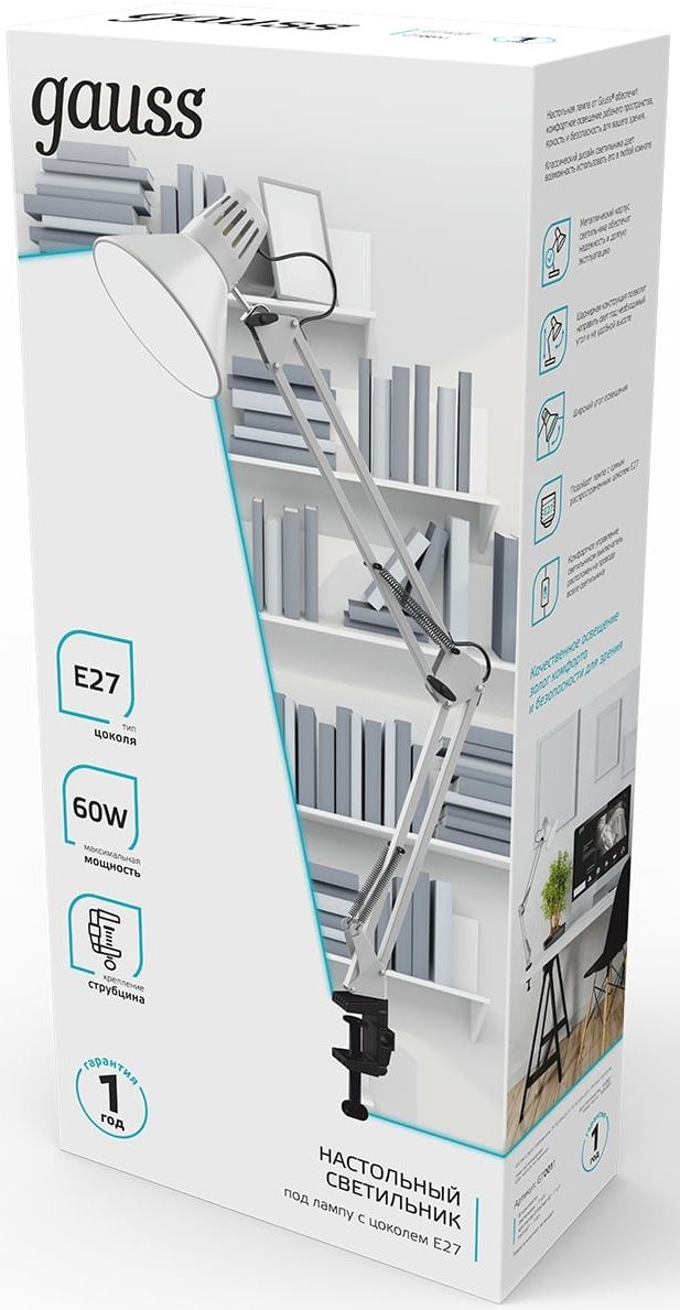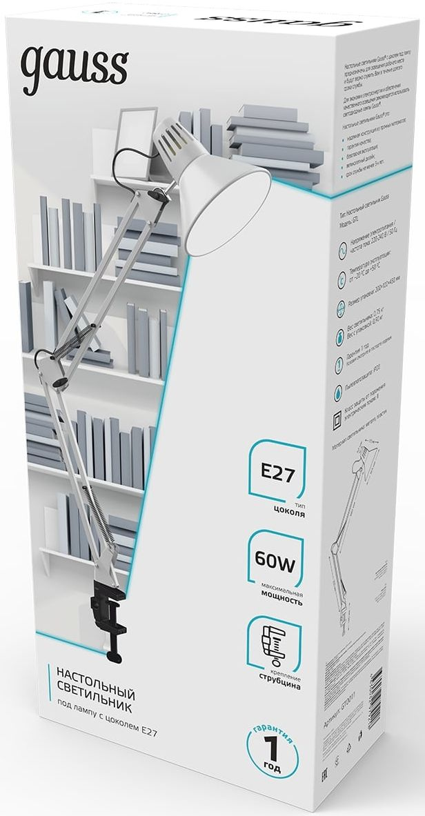 Светильник Gauss GTL001 (GT0011) настольный на струбцине E27 белый 60Вт