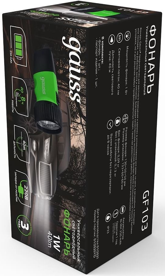 Фонарь ручной Gauss GFL103 черный 1Вт лам.:светодиод. (GF103)