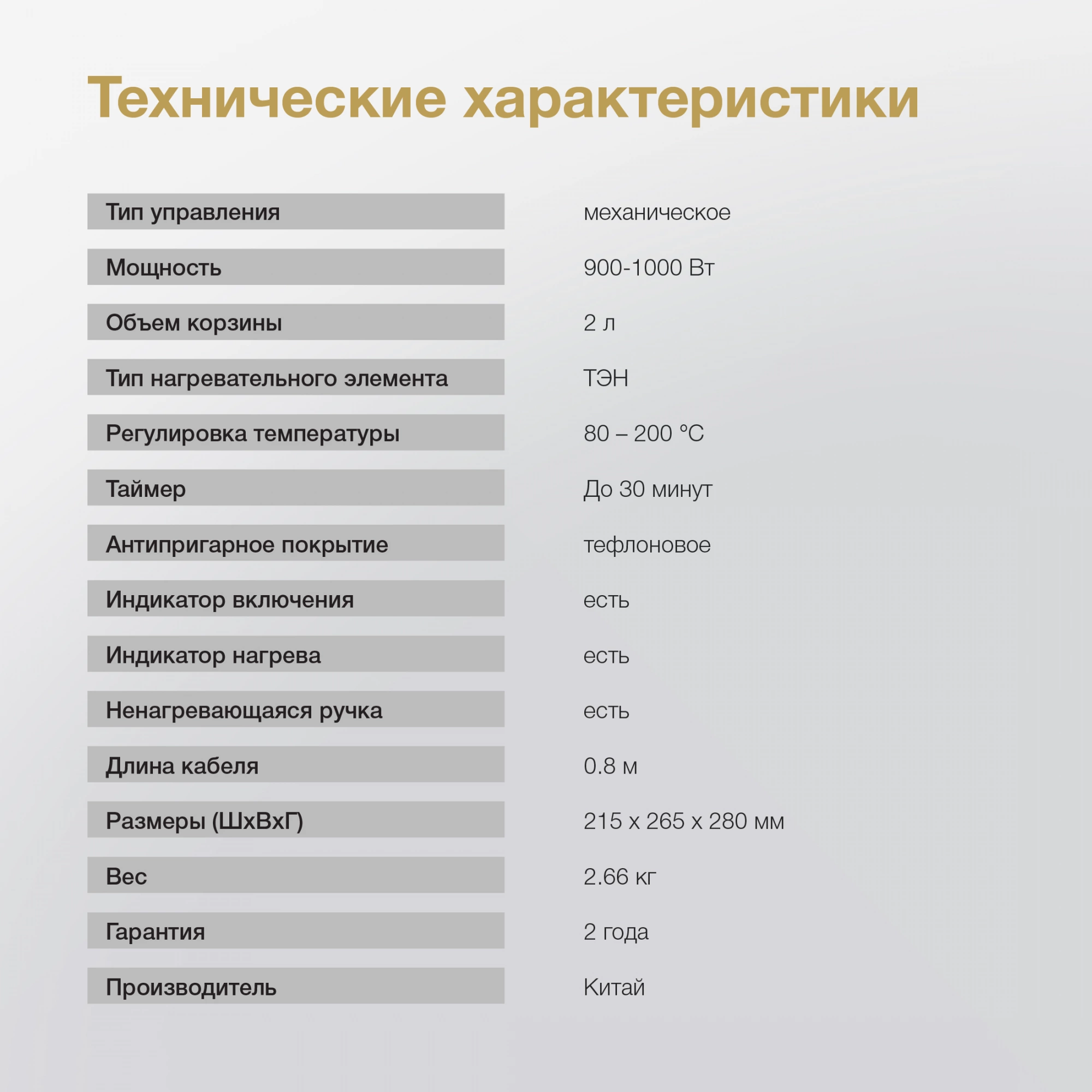 Благодаря системе циркуляции горячего воздуха, продукты обжариваются равномерно со всех сторон, получаясь при этом нежными внутри и с хрустящей корочкой снаружи.