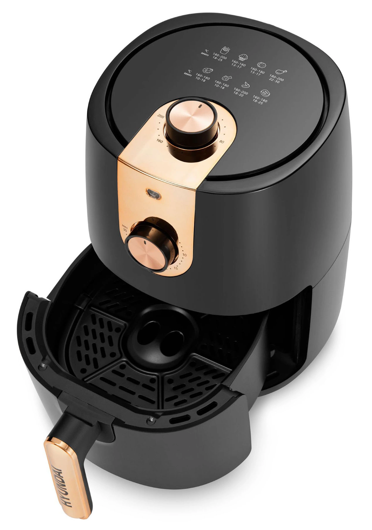 Аэрогриль Hyundai HYF-2057 1000Вт черный/золотистый