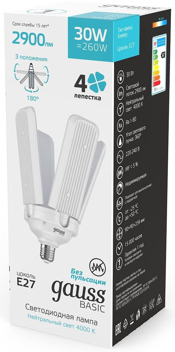 Лампа светодиодная Gauss Basic 11732232 30Вт цок.:E27 клевер 220B св.свеч.бел.нейт. (упак.:1шт)