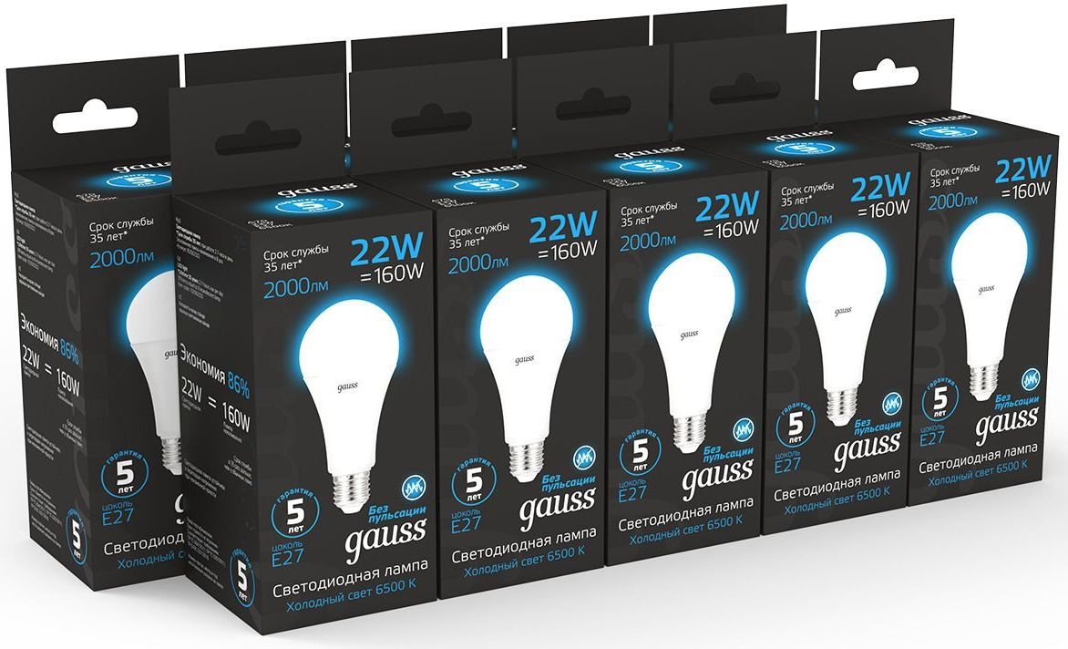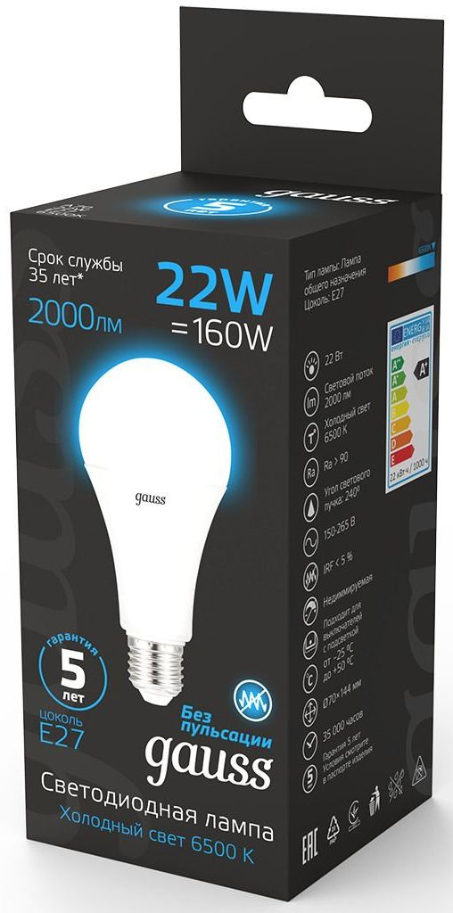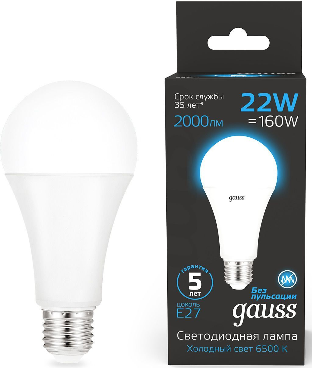 Лампа светодиодная Gauss 102502322 22Вт цок.:E27 груша 220B св.свеч.бел.хол. (упак.:1шт)