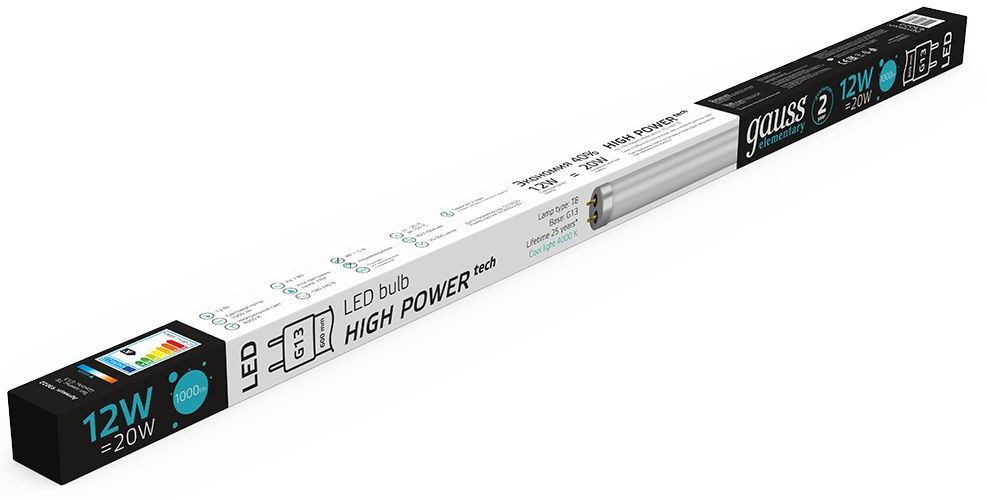 Лампа светодиодная Gauss Elementary 93022 12Вт цок.:G13 трубка 180B св.свеч.бел.нейт. (упак.:1шт)